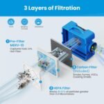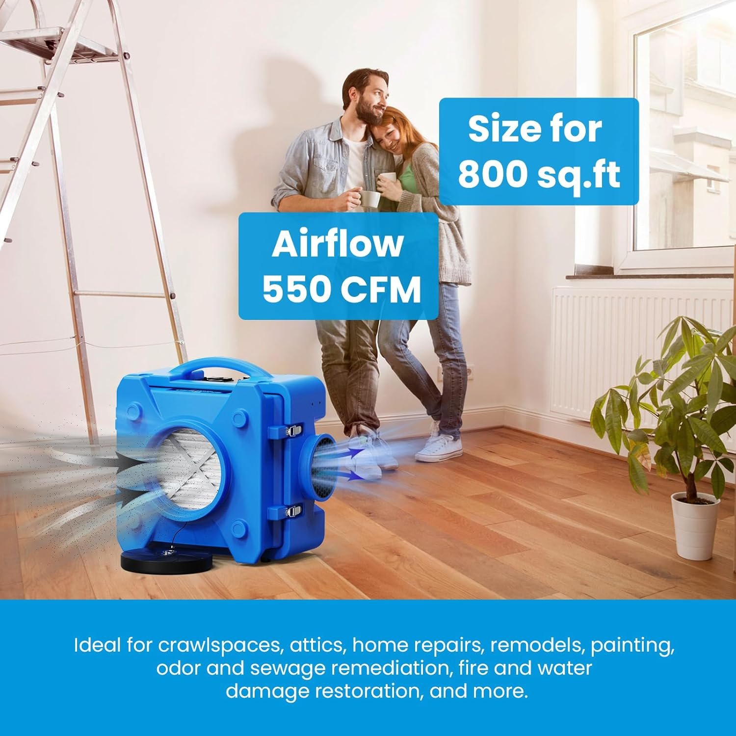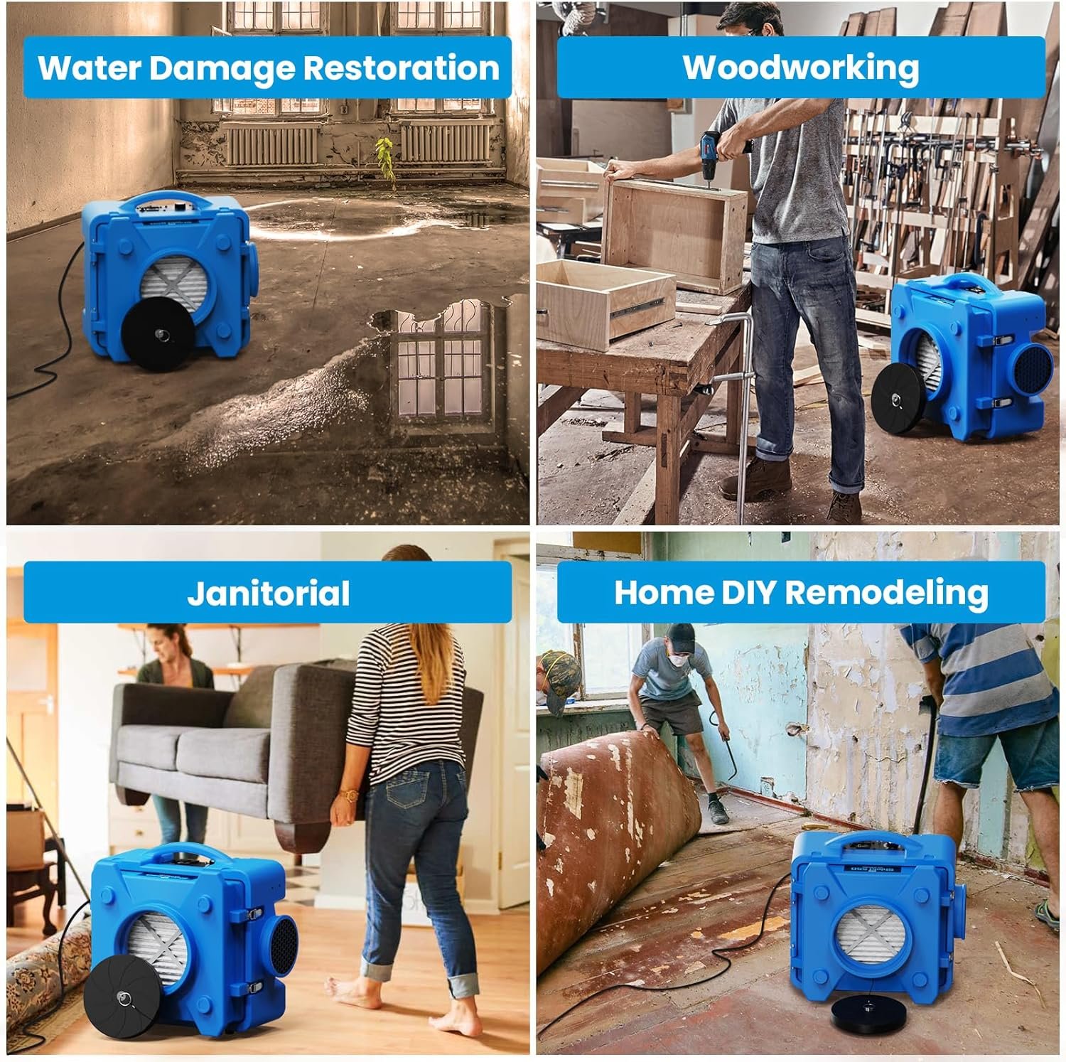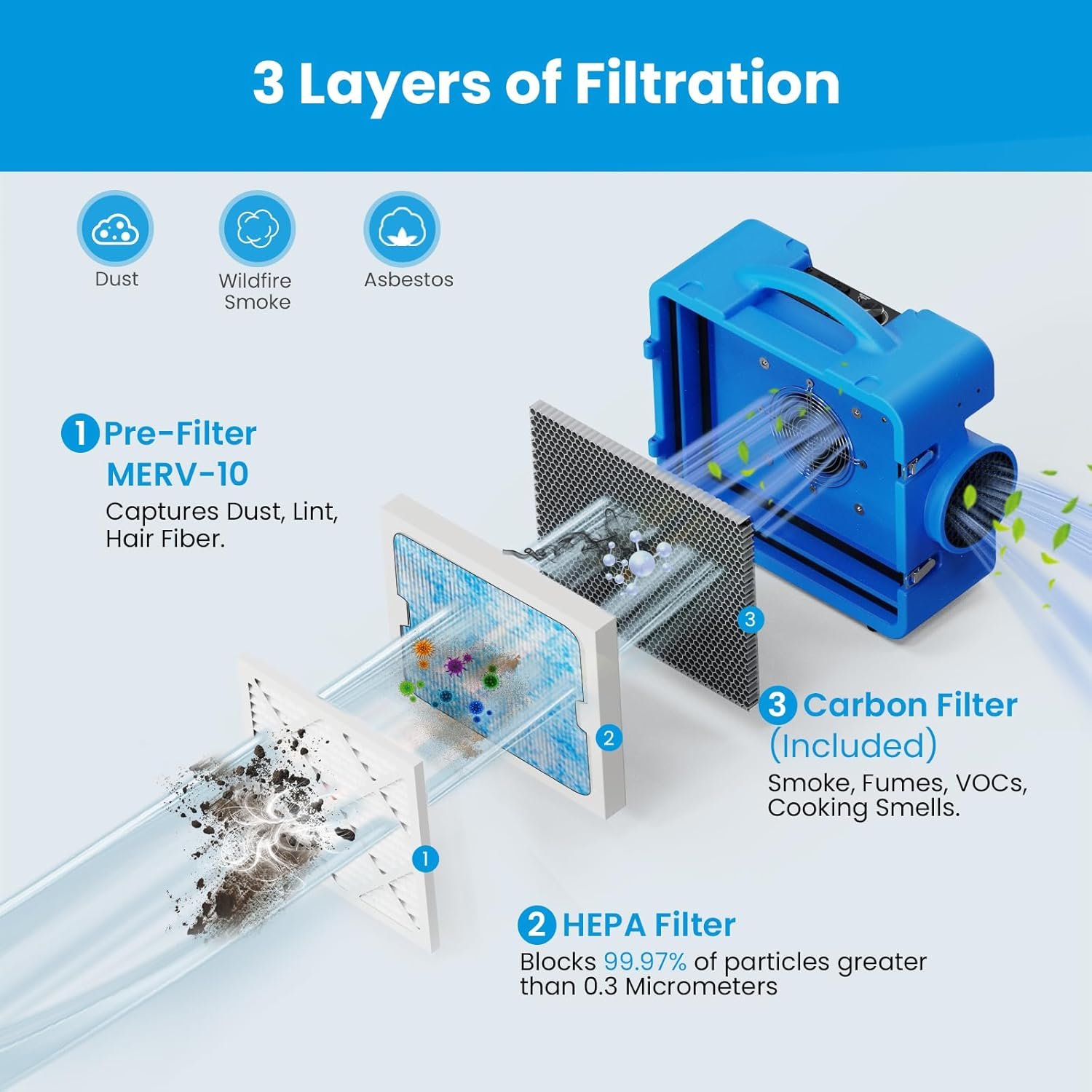 Commercial Heavy Duty Use: The pre-filter (Merv-10) protects the prime Hepa filter acting as a large particle cleaner allowing the Hepa filter to do the finer work. Ideal for home repair and construction sites, sewage remediation, water and fire damage restoration.