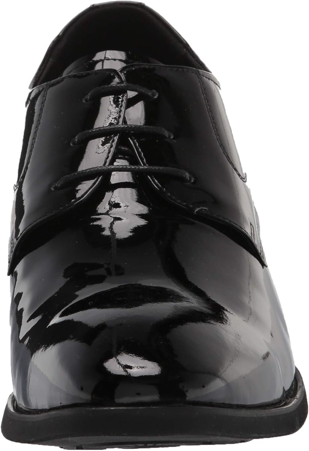 Classic apron oxford. Semi-Patent shiny leather. Tuxedo shoes. Extra padded collar. Plaint toe.