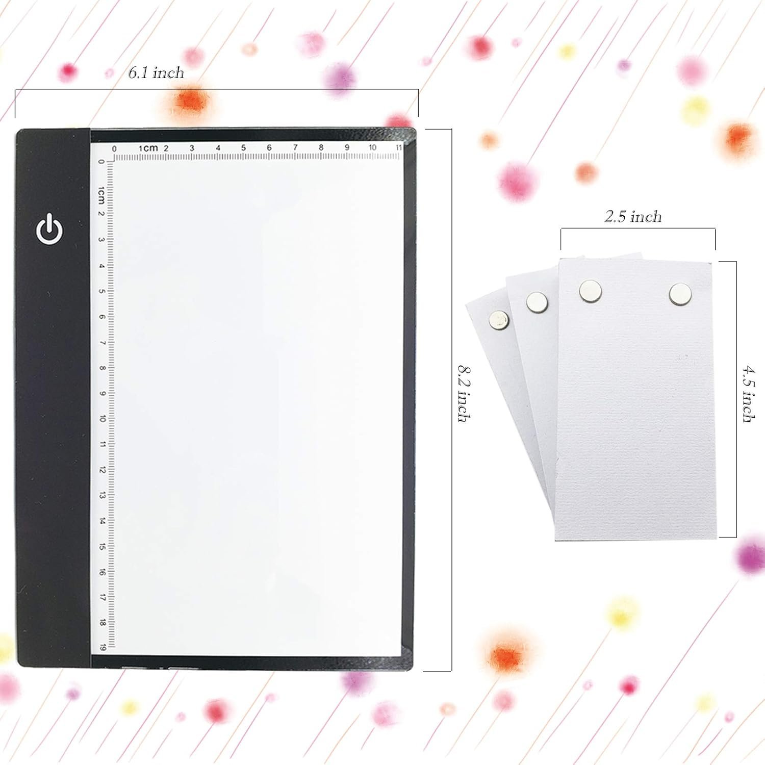 PERFECTLY DESIGNED A5 LIGHT BOX : The thickness of light pad is only 0.35cm(0.14in) which makes it lightweight and portable.Flicker-Free and eco-friendly LED, advanced eyesight-protected technology, no more sore eyes after long-hour working.Easily powered on/off via USB cable.