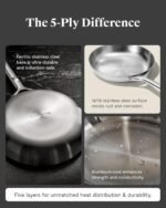 EFFORTLESS CARE & CLEANING: Our 5-ply stainless steel pans hold heat efficiently, allowing you to cook up to medium heat. Coating the surface with 1 tablespoon of oil or butter before preheating ensures easy cleaning – a simple and sustainable solution for busy kitchens.