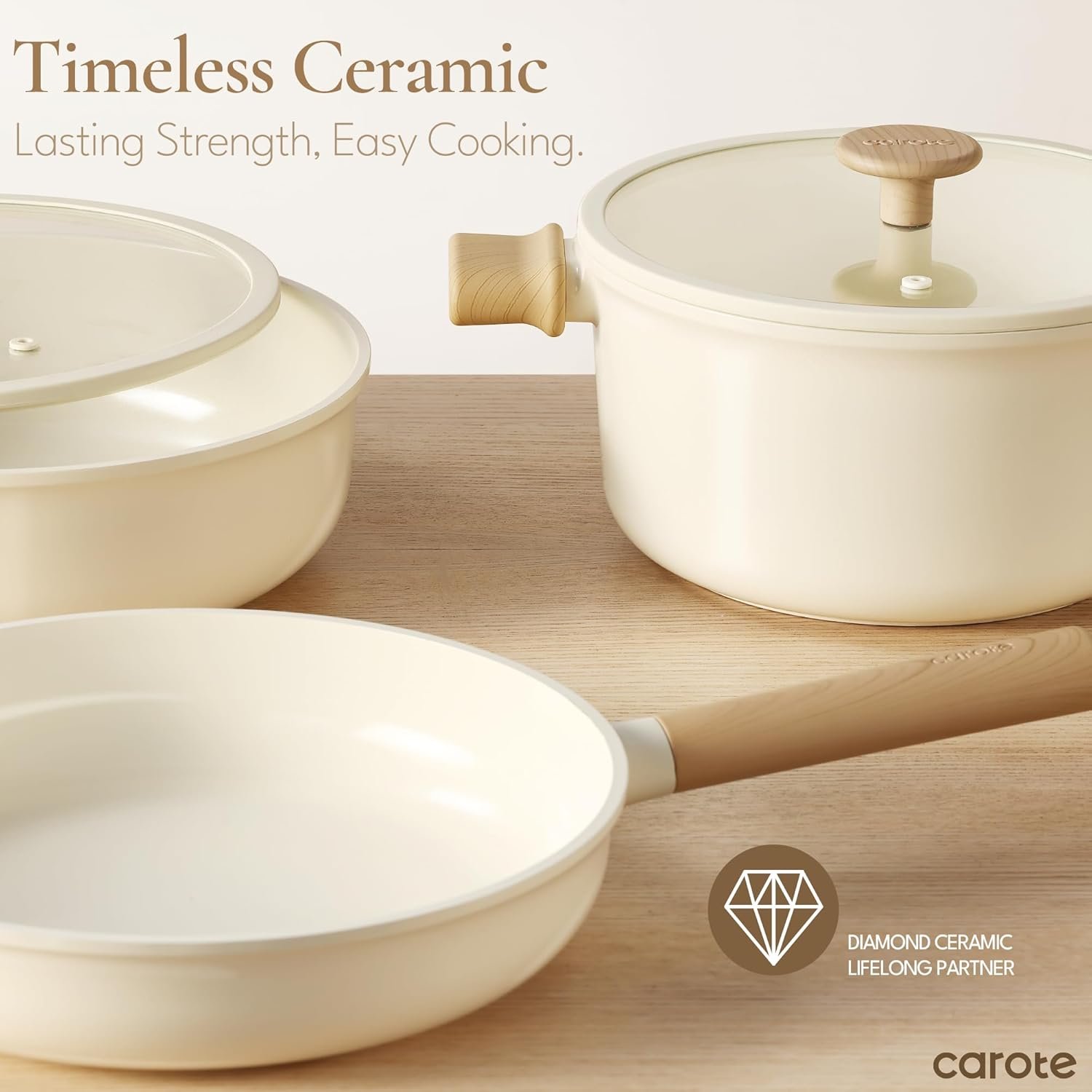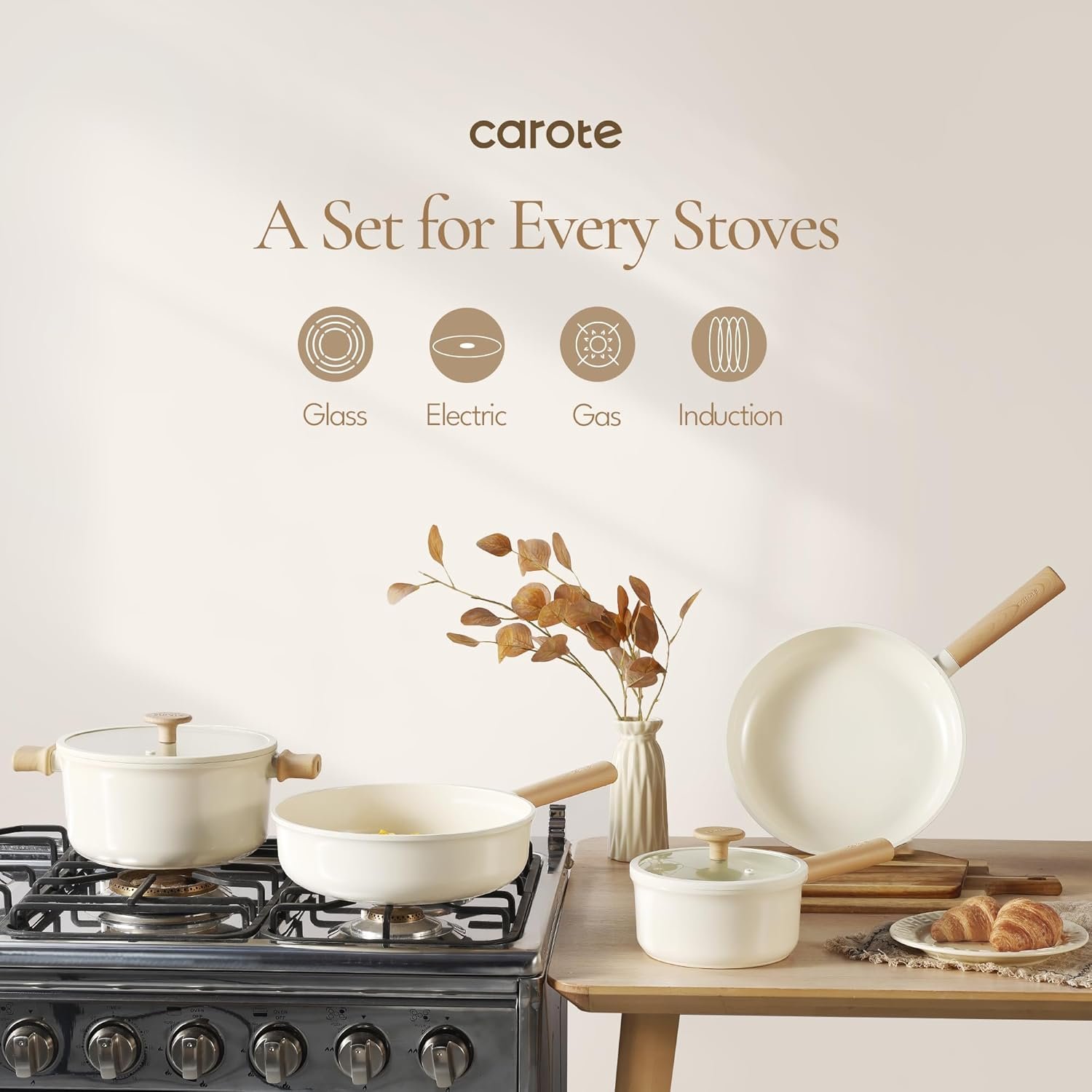 CAROTE 14pcs Ceramic Cookware Set, Pots and Pans Set Non Stick, Nonstick Cookware Set, Dishwasher Safe Non-toxic Healthy Nonstick Cooking Set, with Frying Pans Set, Cream