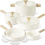 Compatible with All Cooktops: Designed for versatility, this cookware set features a reinforced die-cast aluminum base that heats up quickly and evenly. Perfect for all stovetops, including induction, it ensures a reliable cooking experience with minimal effort.