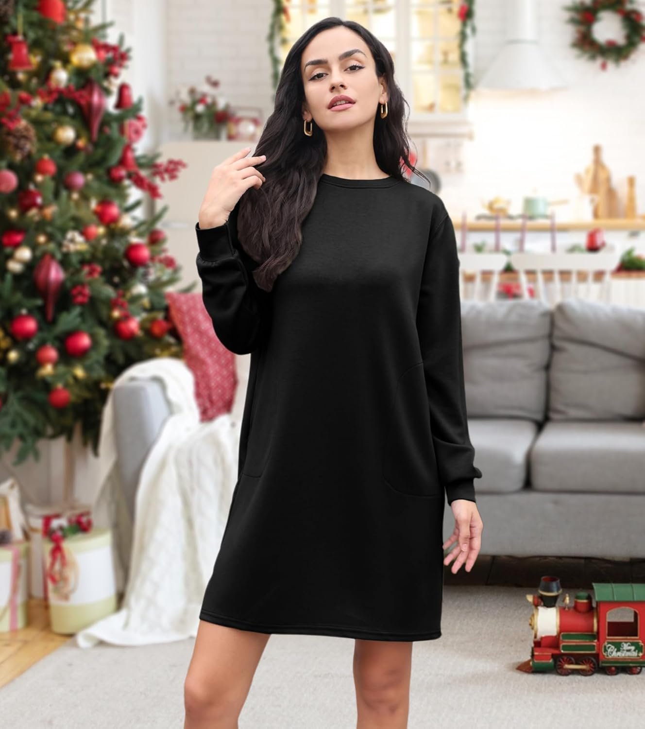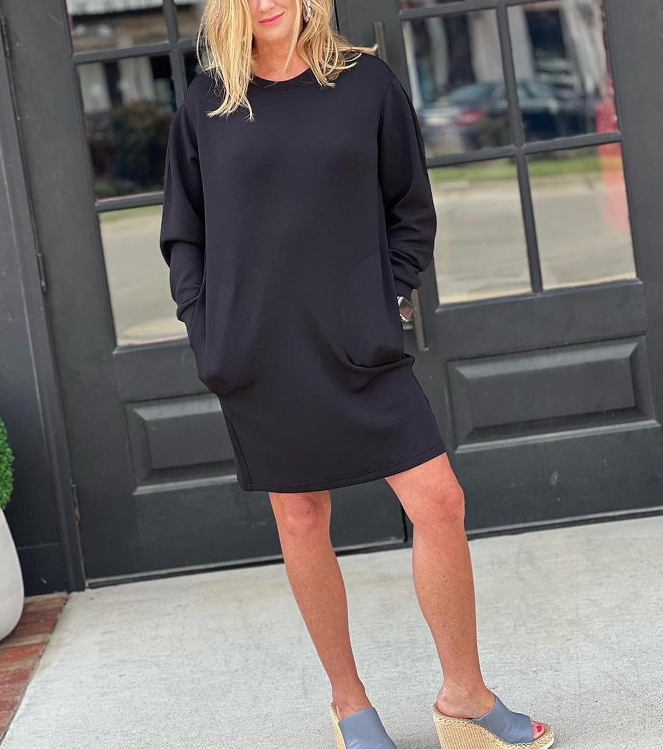 Customers find the sweatshirt dress flattering with cute pleats in the back, and appreciate its soft, comfortable fabric that’s not too heavy. The dress is warm enough for winter and perfect for autumn and winter, with good material quality and nice pockets. While some customers say it has a perfect fit, others mention it runs small-to-size. The fabric quality receives mixed feedback, with some noting it’s not a fleecy sweatshirt fabric. Customers consider it good value for money.