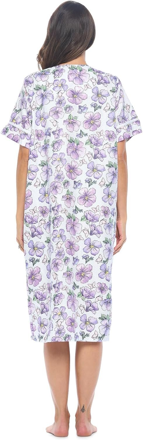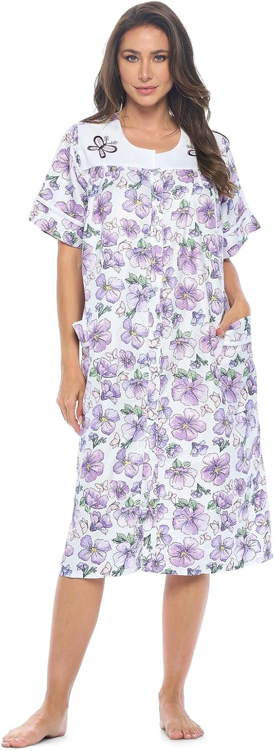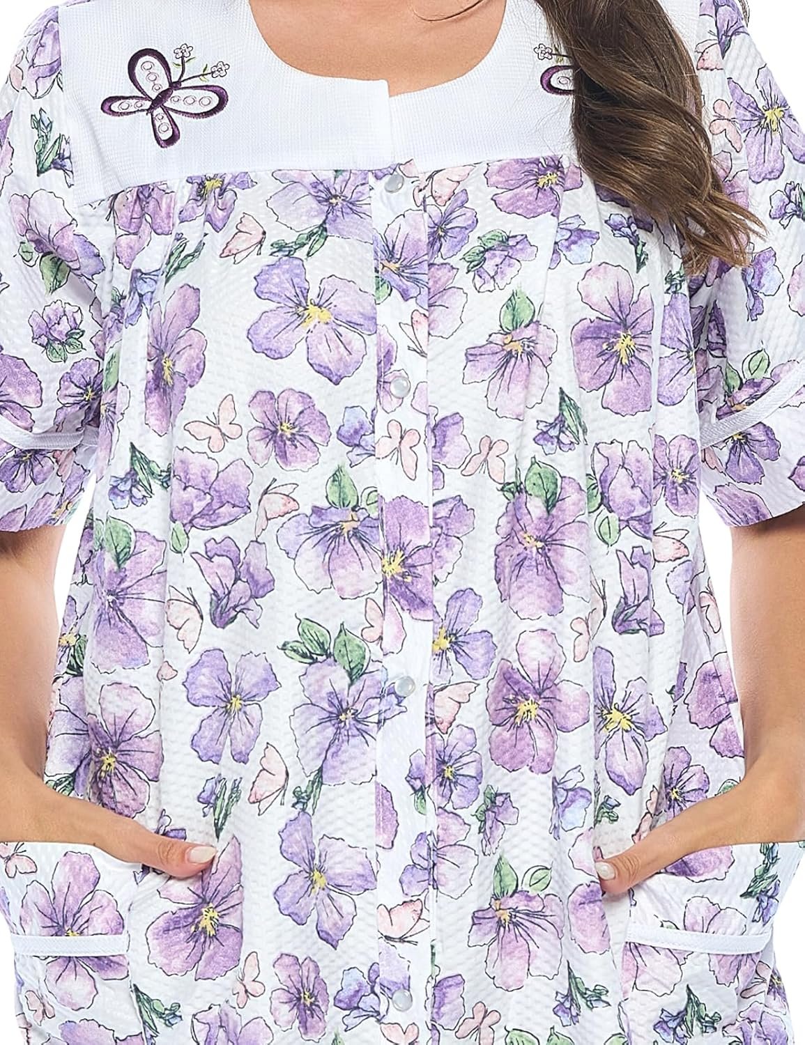Casual Nights Women’s Snap – Front House Dress Short Sleeve Woven Housecoat Duster Lounger Robe with Pockets