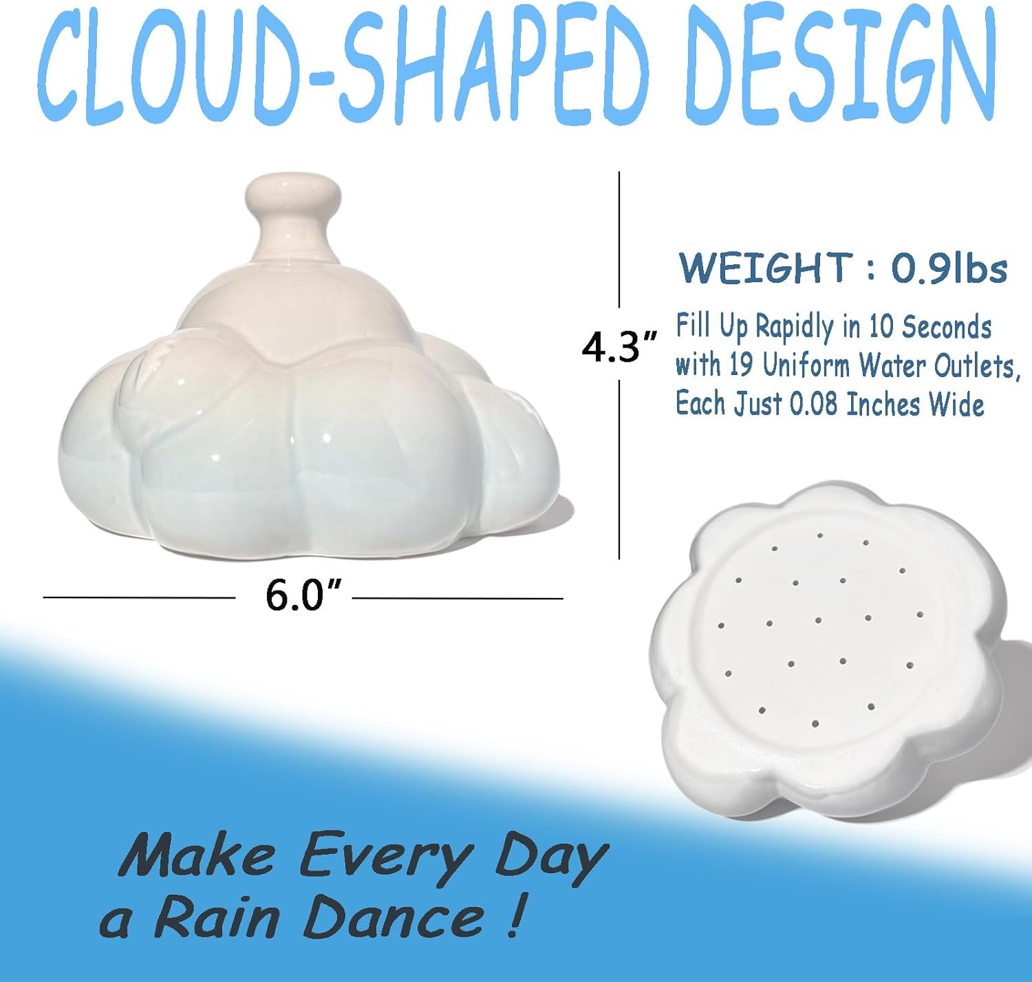 Soothing Rainfall Sound: Experience the tranquil sound of rainfall with The Cloud, a unique watering can that mimics its soothing rhythm. This distinctive feature promises a delightful watering experience, turning each watering session into a moment of relaxation and joy.