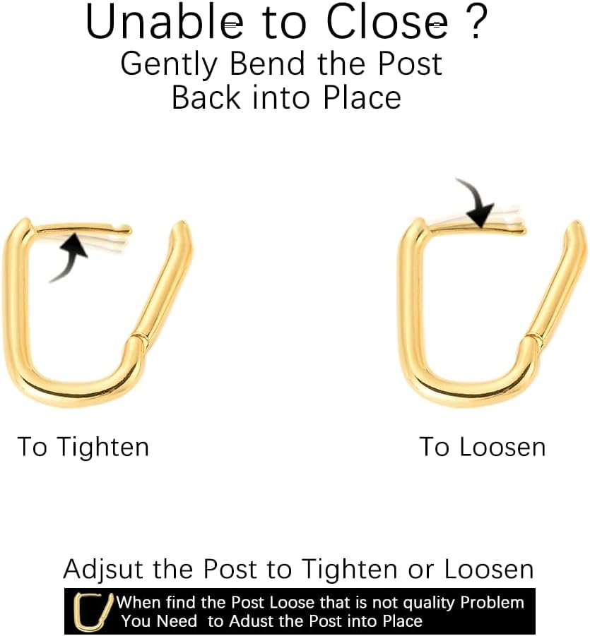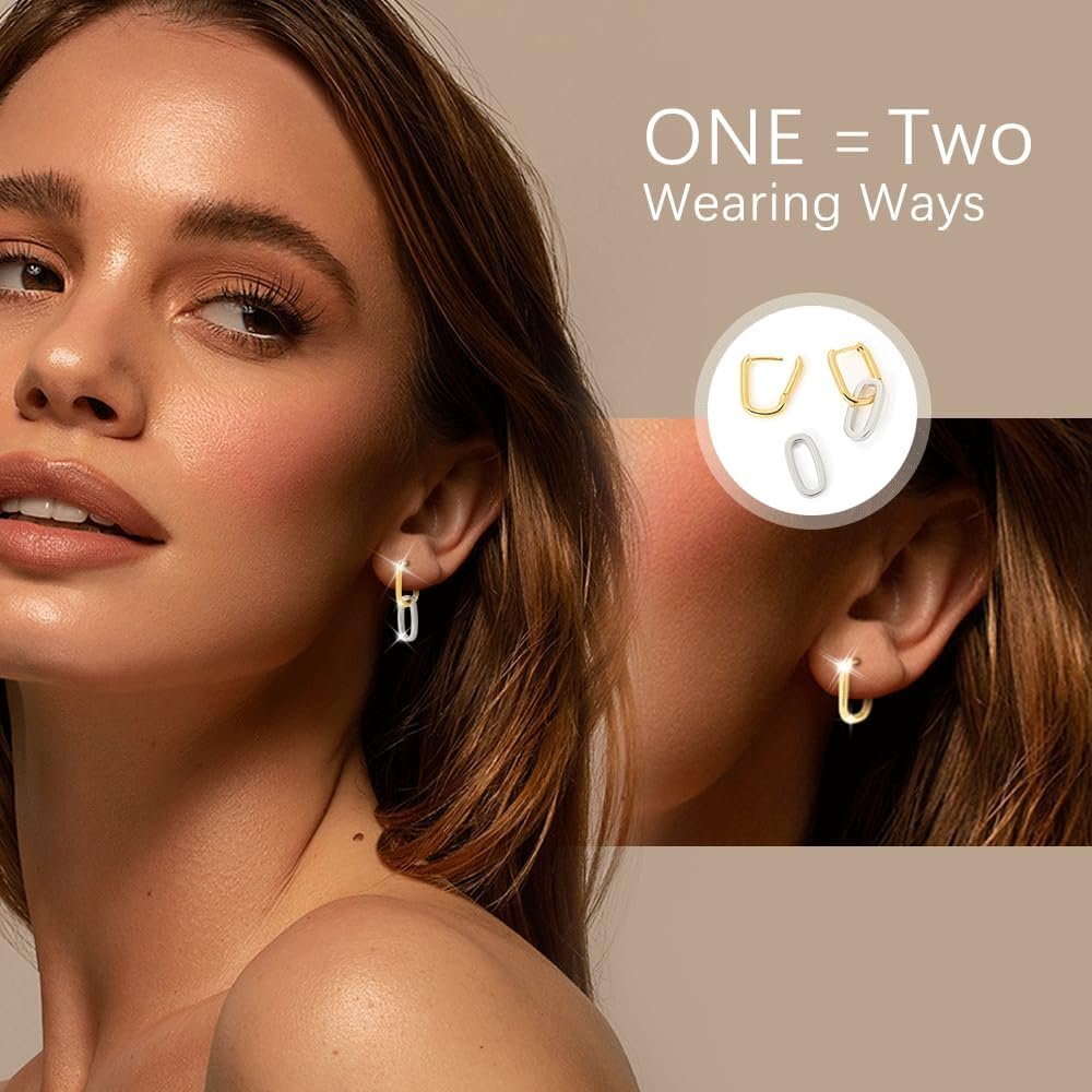 Chain Link Chain Earrings for Women – 18k Gold Plated Convertible Hoops Earings, Small Square Drop Earings, U shaped Earings for Sensitive Pierced Earlobes