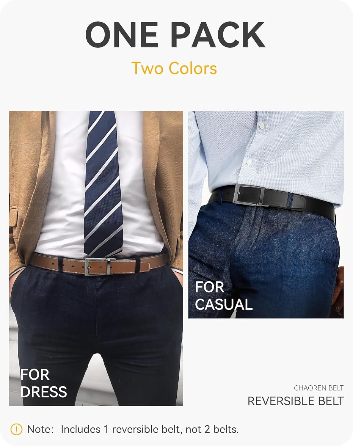 CHAOREN Mens Belt 1 Pack – 1 3/8″ Leather Reversible Belts for Men for Dress Pants