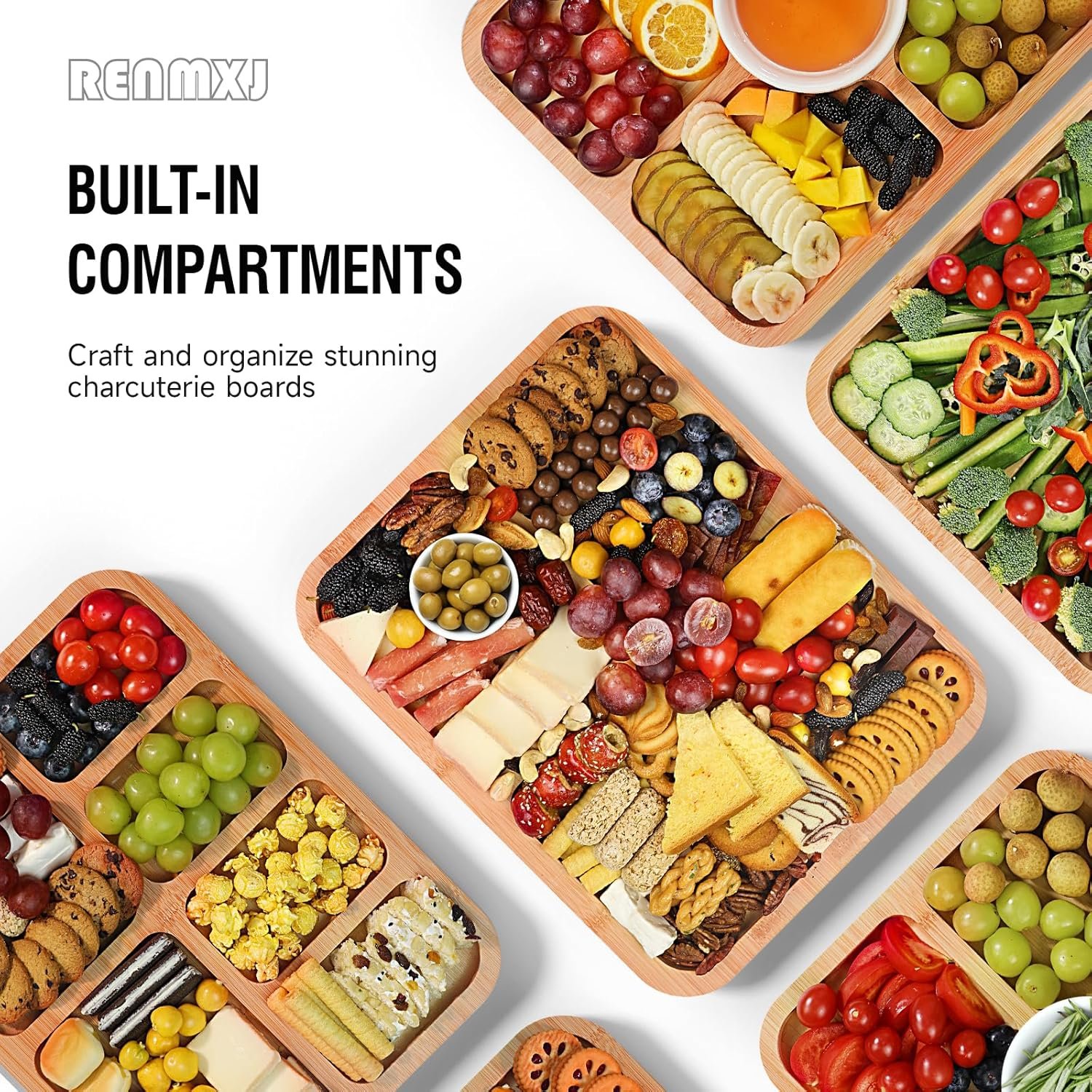 DUAL-FUNCTION DESIGN: Renmxj charcuterie board is an all-in-one solution for food prep and presentation. Cut and prep on one side. Flip to reveal 1 compartments ideal for charcuterie boards, snack trays, or veggie platters. You only need one board to enjoy both functions