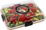 CUSTOMIZABLE & PORTABLE: Arrange cheeses, fruits, nuts, and meats in the compartments to create personalized, eye-catching displays. A portable handle is on the lid of outer transparent container. You can use the handle with confidence to take the charcuterie board to any where, ideal for picnics, parties, and more