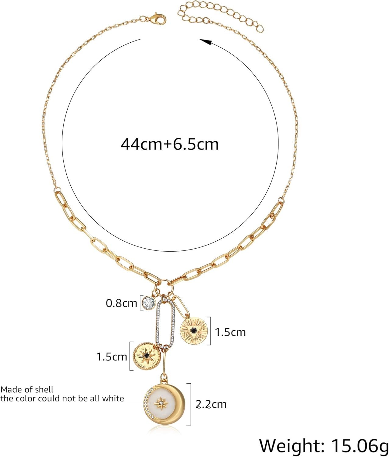 Charm Necklace for Women Gold Evil Eye Sun Moon Flower Coin Pendant Necklace Dainty Paperclip Chain Vintage Luck Amulet Choker Necklaces Celestial Jewelry Gift