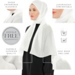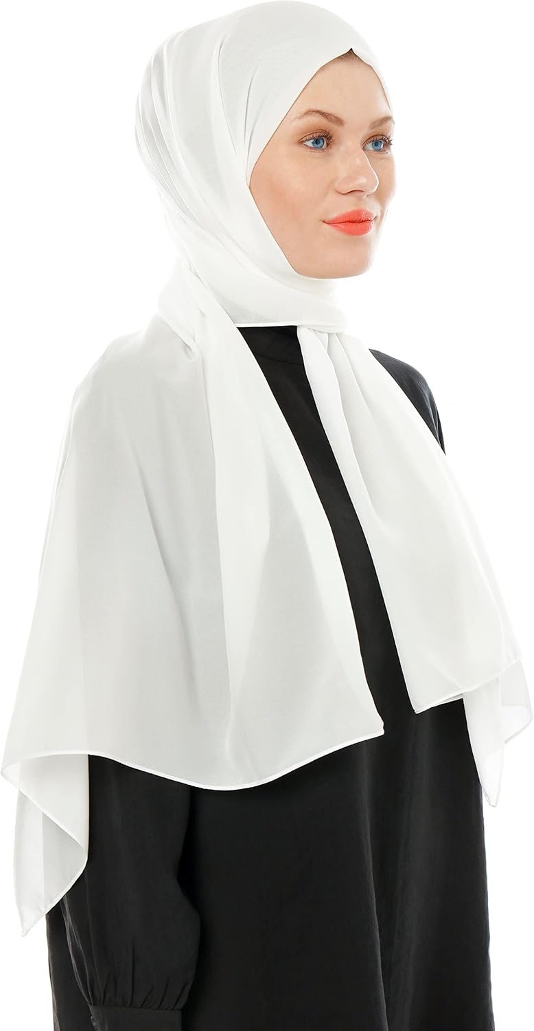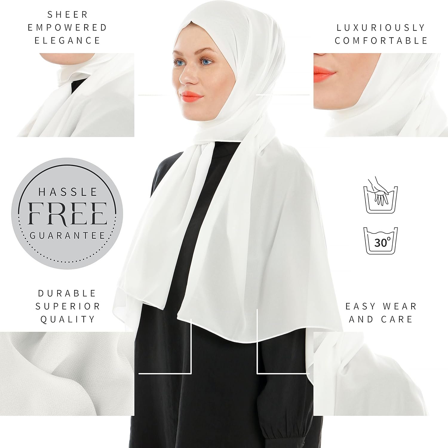 Our classic long head scarf becomes one of your favorite chiffon hijabs for women because you’ll look and feel great wearing it! At Ayisah, we cultivate the Islamic tradition of ihsaan as our core business principle. Everything we do with our hijabs and womens scarves embodies beauty, perfection, and excellence. Our stylish scarves for women inspire comfort and confidence. An Ayisah hijab scarf for women is an airy gauzy scarf, soft and weightless, and super easy to style. The sheer fabric is light, crisp chiffon that becomes opaque if the thin scarf is folded. To prevent slipping we recommend under caps, pins, or hijab magnets. To extend the life of your chiffon head scarfs for women handwash the delicate fabric in cold or tepid water with mild soap or on the ‘handwash program’ of a washing machine up to 30C and squeeze lightly. Air dry away from sunlight and indoor heat. Why You’ll Love It Our SELDA lightweight scarves are 71 L x 27.5 W inches (180 x 70cm) and can be worn in any season and weather condition. The ultra-thin sheer silky material in this wrap scarf for women supports confidence in your appearance all day. This classic scarf hijab for women makes you look and feel good with little effort, so it is ideal for casual and professional wear. Our chiffon hijab is designed to cover your head and hair in traditional fashion. The scarf is a frame that emphasizes your features in a most attractive way. We design exceptionally comfortable and beautiful hijabs for Muslim women, for all occasions. At Ayisah our vision is to deliver fast fashion hijabs to consumers at affordable prices. Our high-quality hijabs and scarves appeal to all tastes. Quality is never compromised, and we only offer the same quality that we gladly wear ourselves. Ayisah shawls and wraps for women make enduring trendy gifts for women so consider a women’s scarf for the cherished females in your life. Including yourself!