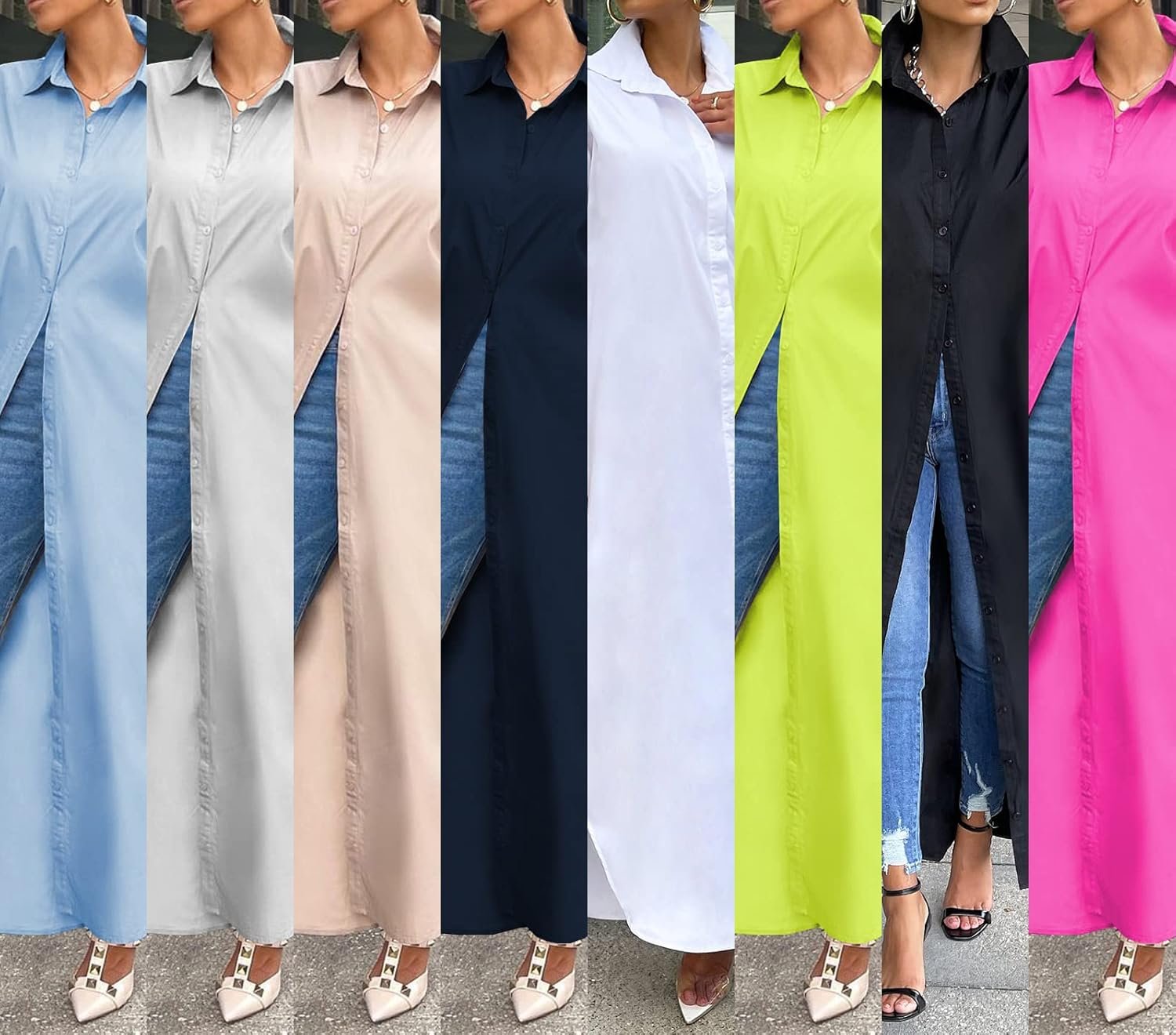 Choichic Womens Button Down Shirt Oversized Shirts Maxi Shirt Dress