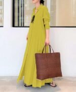 Customers appreciate the dress’s comfortable fit, beautiful style, and great cotton fabric. They find the length perfect for tall people and the color stunning. Some customers appreciate the fabric weight and pocket size. However, some find the sizing too big or loose. There are mixed opinions on the material quality and button quality.