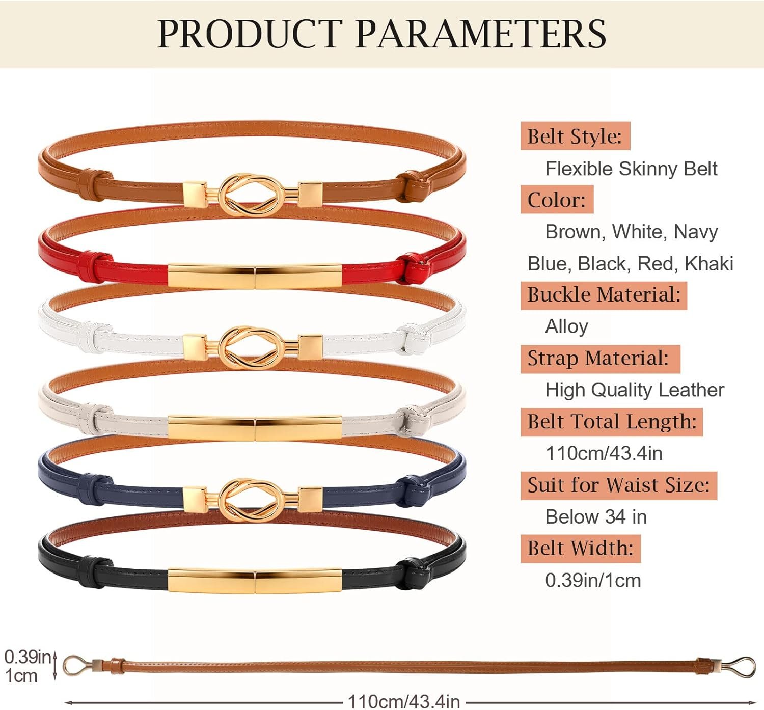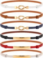 Chuarry 6 Packs Women Skinny Leather Belt Slim Adjustable Waistband Thin Women’s Dress Belt Vintage Waist Belts for Ladies, 0.4 Inches Wide
