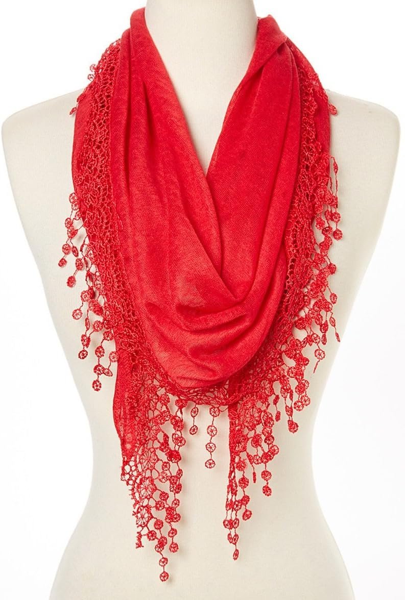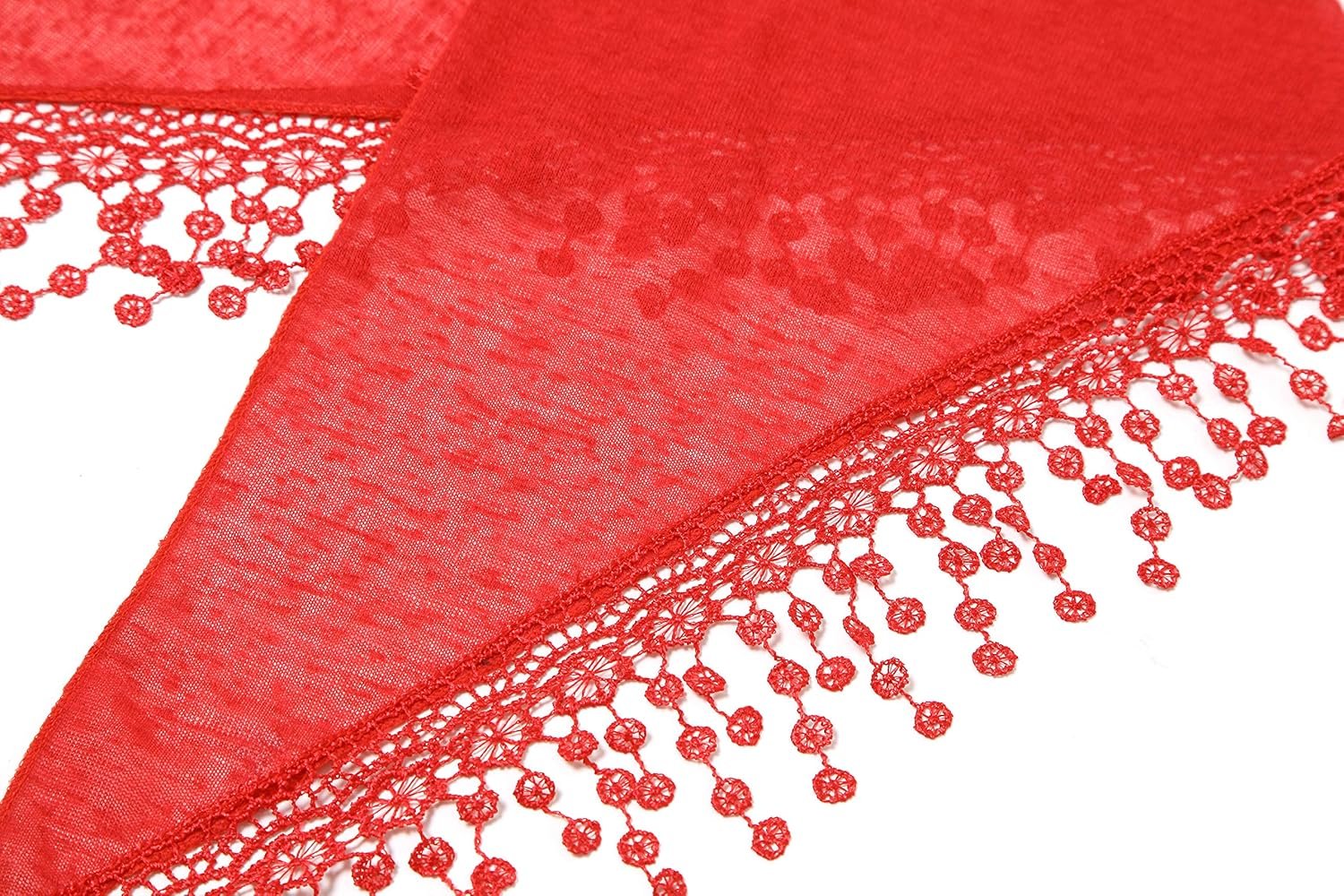 Cindy & Wendy Lightweight Triangle Floral Fashion Lace Fringe Scarf Wrap for Women