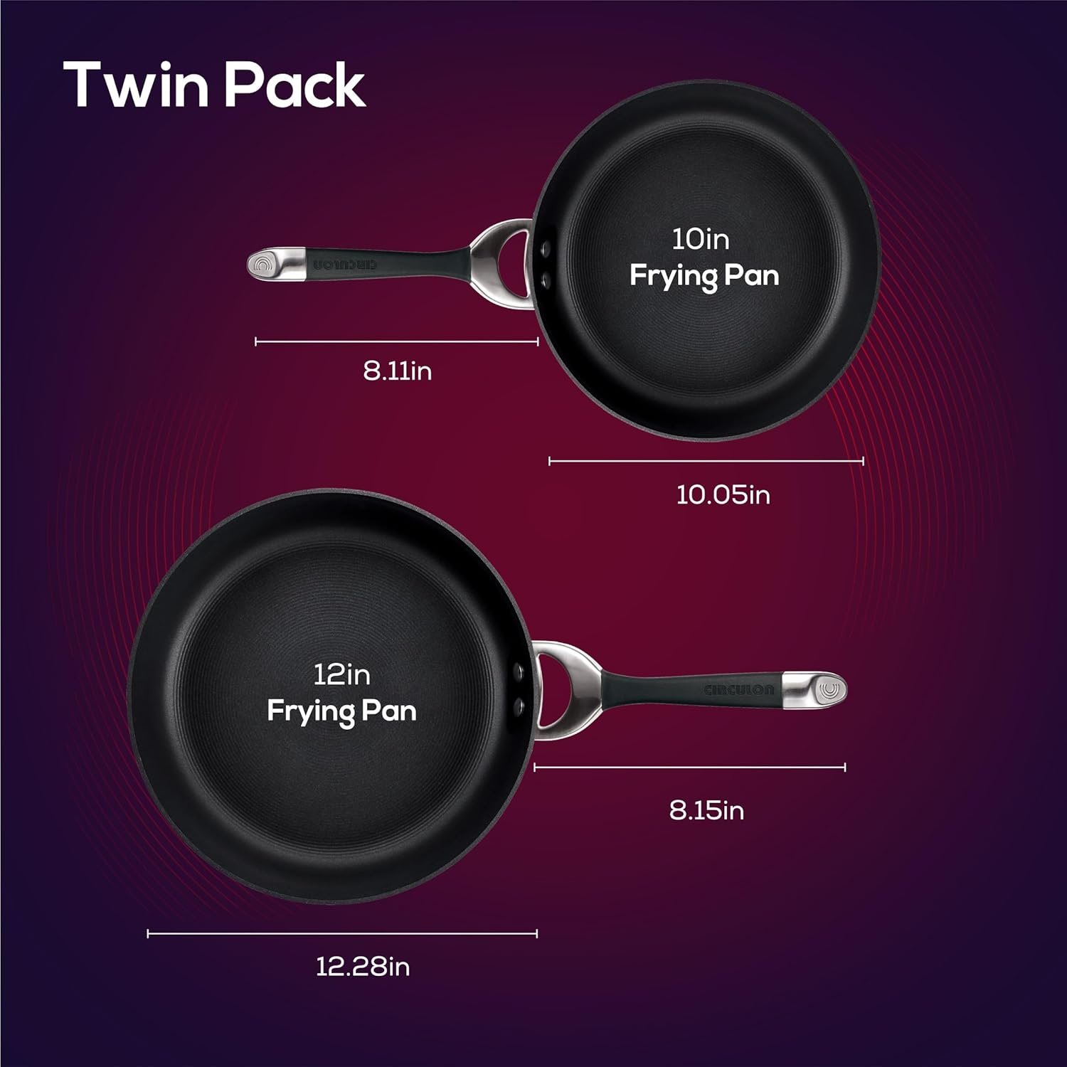 Circulon Symmetry Hard Anodized Nonstick Frying Pan Set / Skillet Set – 10 Inch and 12 Inch, Black