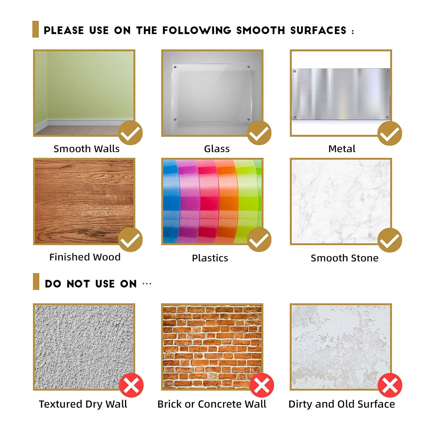 ITEMS INCLUDED – We also provide 2 dry erase markers and 1 plastic scraper to help you apply the sticker. We suggest you use the sticker on surfaces like smooth walls, glass, metal, finished wood, plastics and smooth stone.
