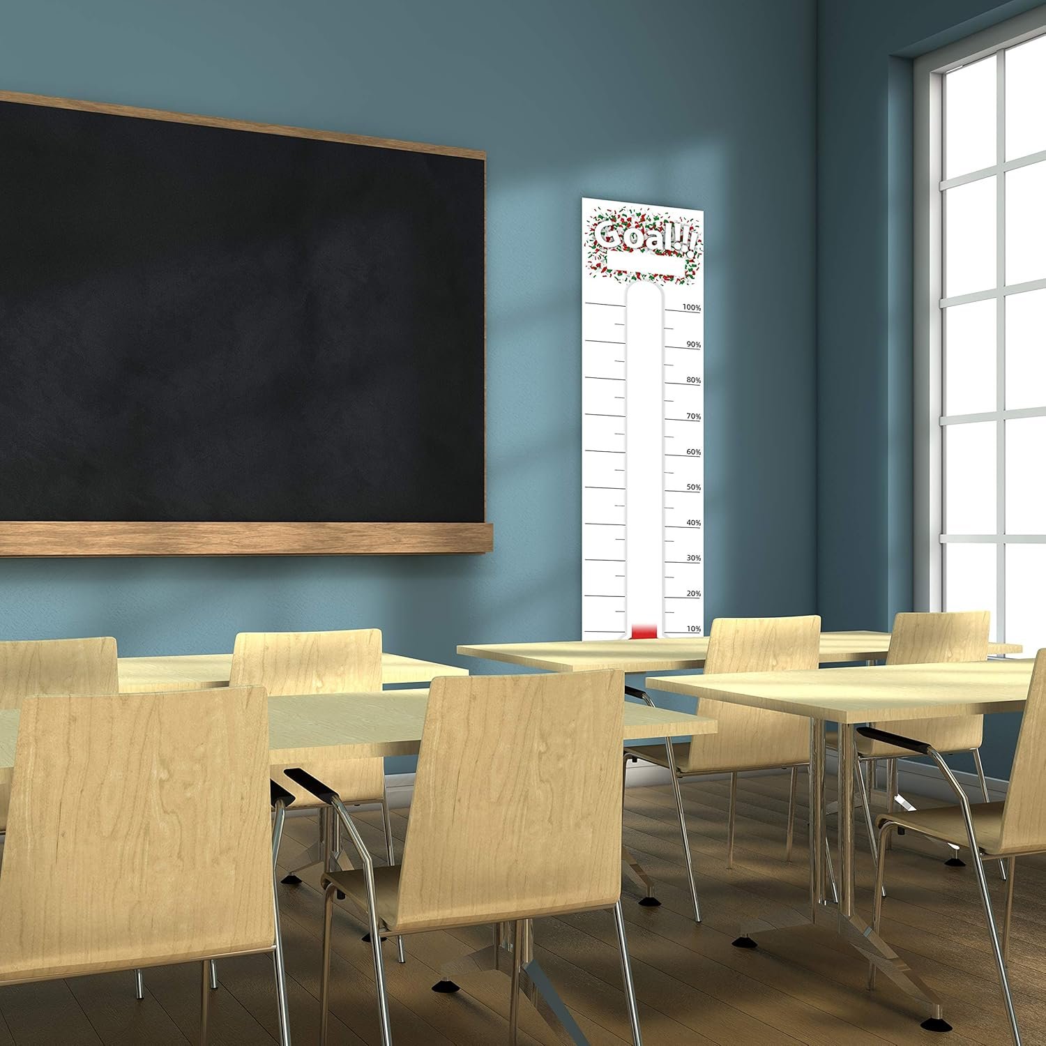 CLEVER CLEAN Goal Setting Fundrasing Thermometer – 48″x12″ Dry Erase Self-Adhesive Goal Tracker – Poster Charts for Home, School and Office