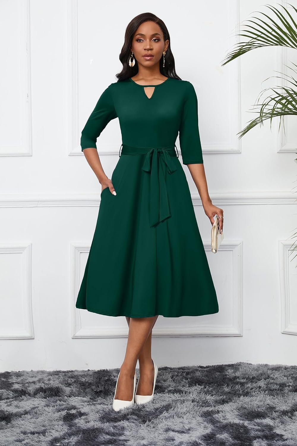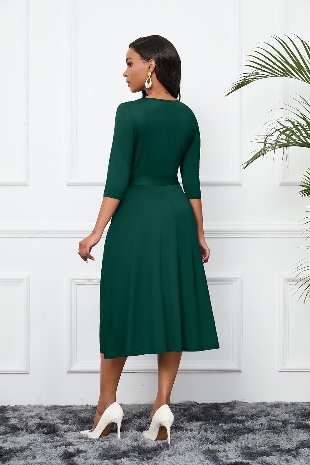 CLOCOR Women 3/4 Sleeve A-Line Midi Dress women midi dresswomen midi dress