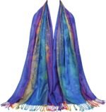 Customers love the shawl’s gorgeous colors and soft, smooth fabric that feels great to wear. The shawl is well-sized, large enough to wrap around the shoulders, and customers find it perfect for keeping warm in cool temperatures, with one noting it’s lightweight enough to keep them cool. While the material quality receives mixed reviews, with some praising its good quality while others find it thin and flimsy, customers appreciate its value for money and consider it worth the price. However, several customers report issues with holes and pulls throughout the material.