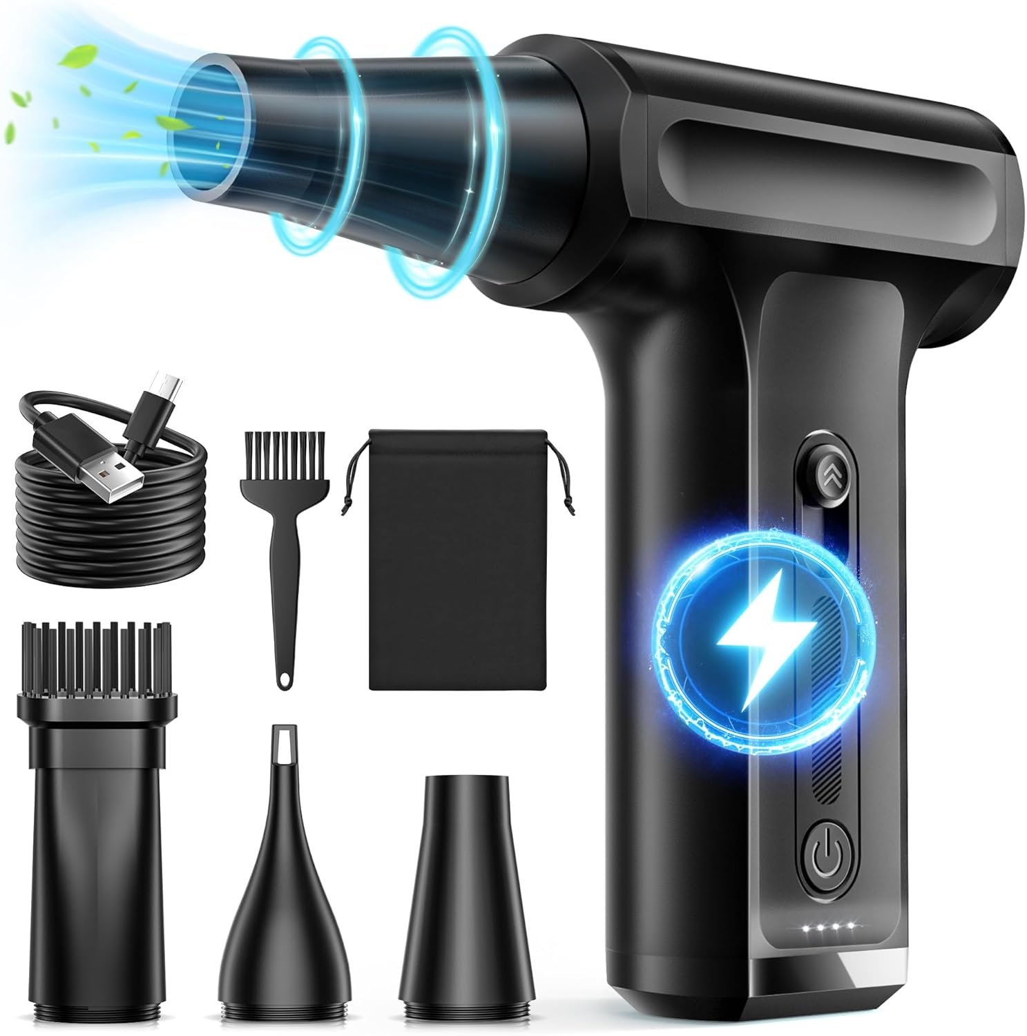 Compressed Air Duster-Stepless Adjustable 110,000RPM Electric Cleaner for Keyboard, PC Cleaning, Rechargeable Cordless Jet Dry Blower Replace Canned Air Compressed Air Cans – Black