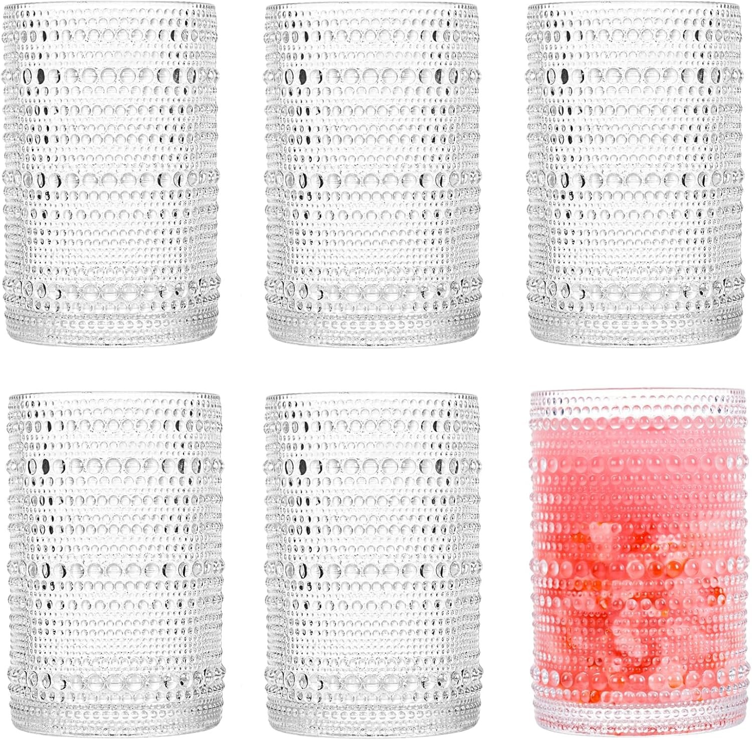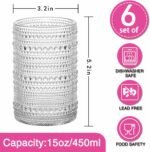 Consou Large Glasses Set of 6, 15 oz Hobnail Glassware Thick Glass Heavy Base