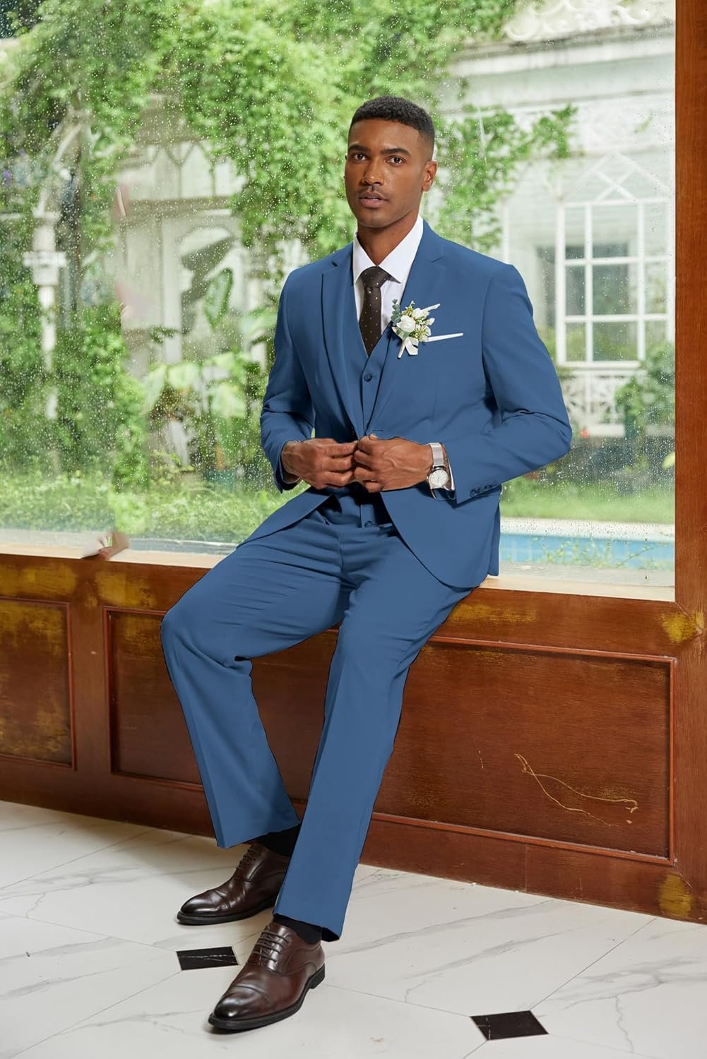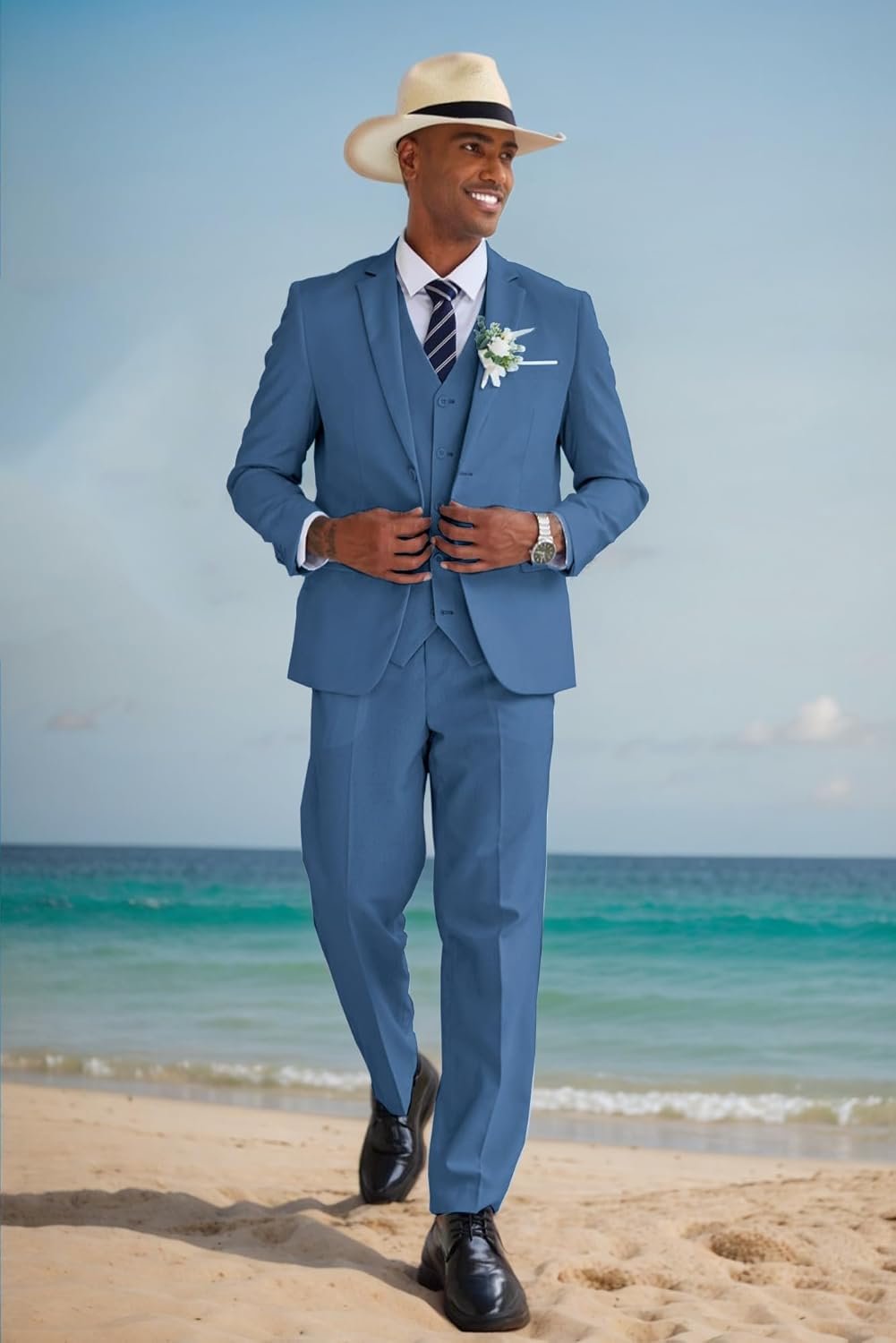 COOFANDY Men’s 3 Piece Linen Suits Casual Lightweight Blazer Jackets Vest Pants Set for Wedding Business Prom