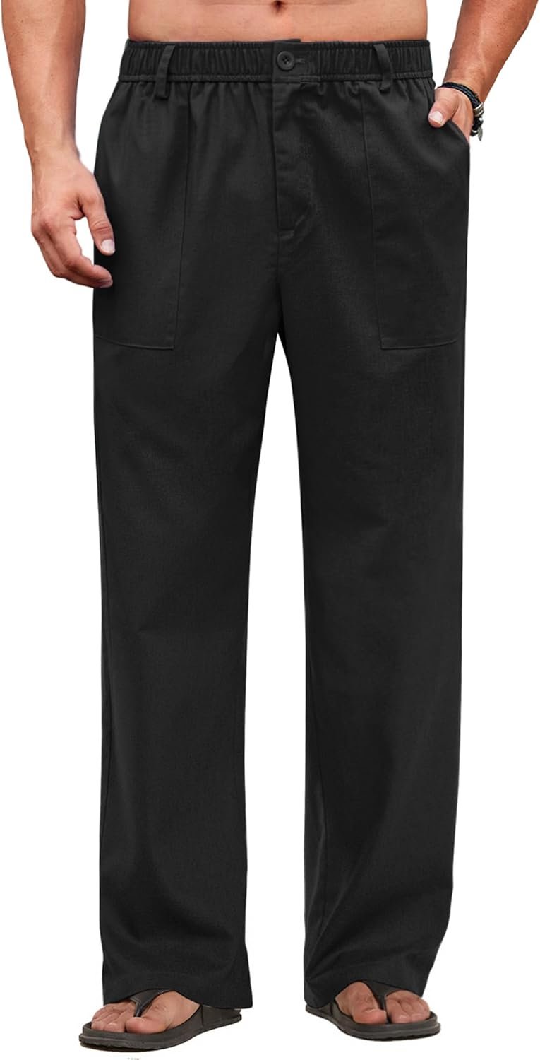 COOFANDY Men’s Casual Linen Cotton Pants Elastic Waist Summer Beach Trousers Lightweight Yoga Vacation Pants