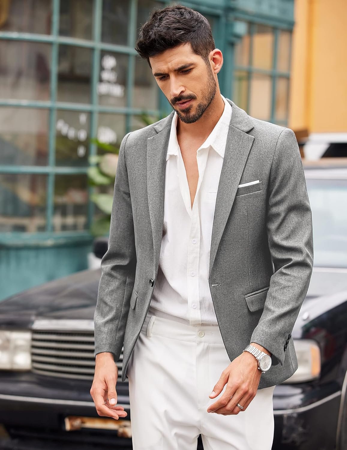 COOFANDY Men’s Casual Suit Blazer Jackets Lightweight Sports Coats One Button Linen Texture Jacket