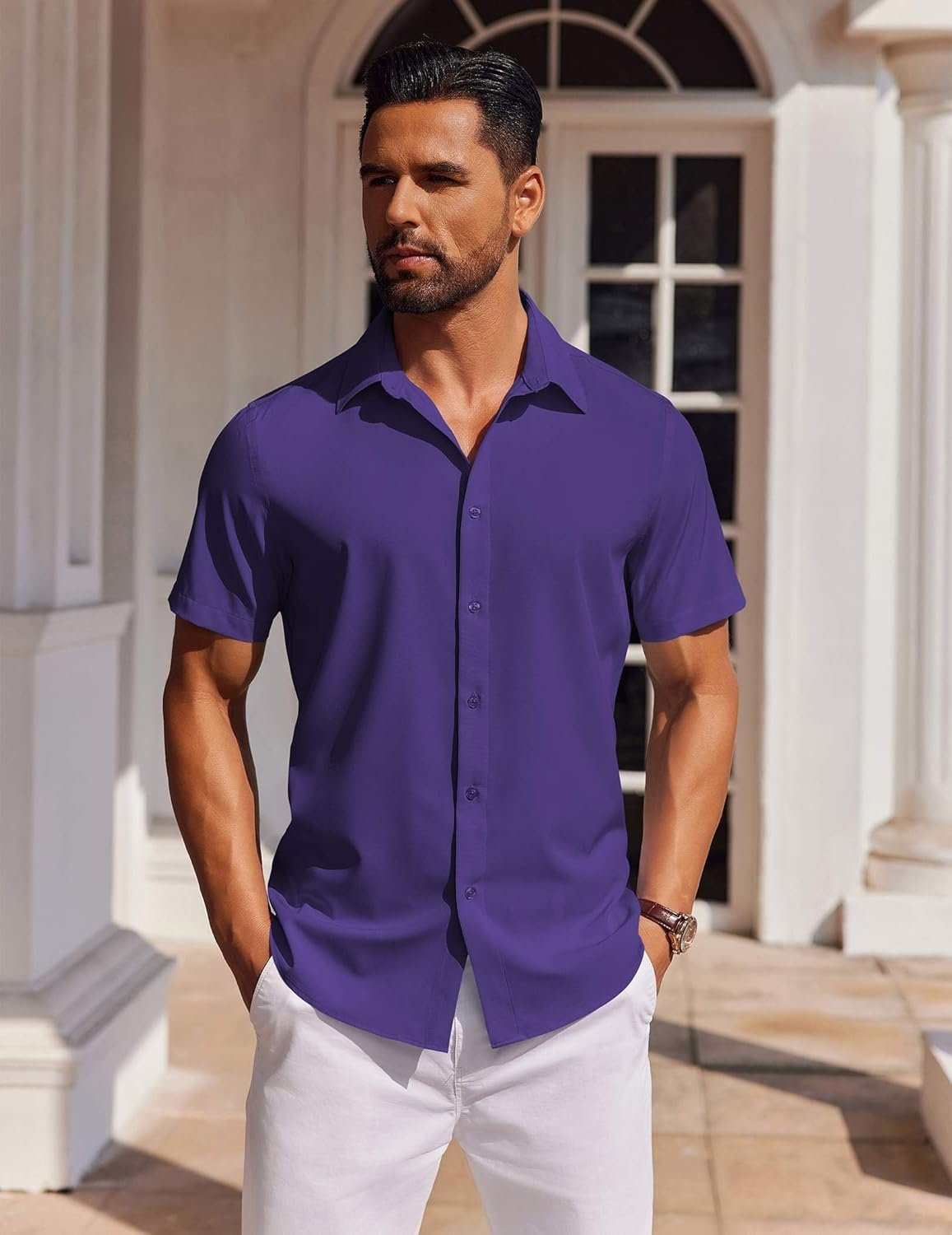 COOFANDY Mens Short Sleeve Button Down Shirts Casual Summer Shirt Untucked Dress Shirts