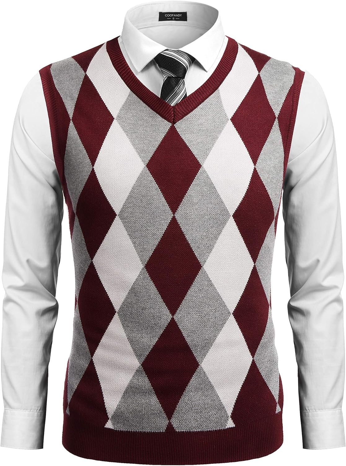 COOFANDY Men’s Sweater Vest V Neck Casual Sleeveless Knitted Pullover Sweater Argyle Sweater VestArgyle Sweater Vest