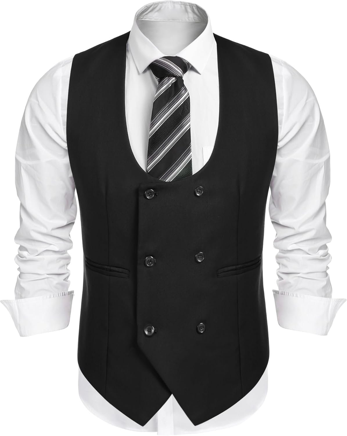 COOFANDY Men’s Suit Vest Slim Fit Double Breasted Dress Vest Casual Business Formal Waistcoat