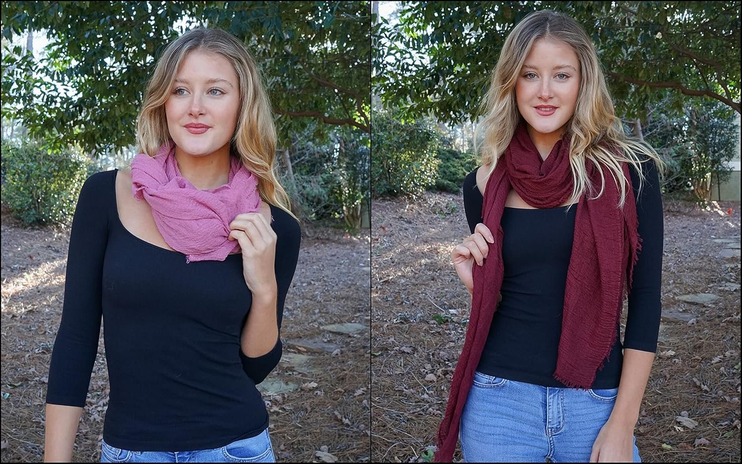Our softest cotton scarf ever. Over-sized but super lightweight and extremely comfortable any time of year! These all seasons cotton scarves can work as a traditional scarf, a wrap, hijab, shawl, headband, or a pareo. With a natural crinkled texture, it is the perfect accessory for any occasion!