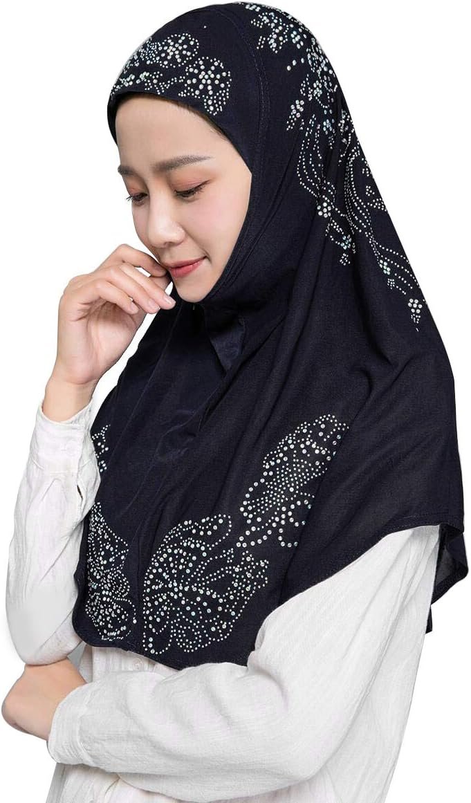 CRIZAN Muslim Islam crystal Headscarf Hijabs Cap for Women Girl Cotton Long Scarf Wrap