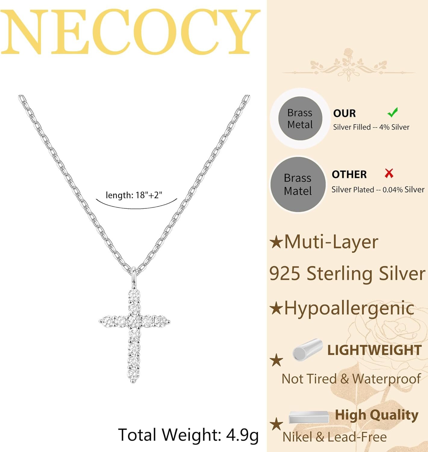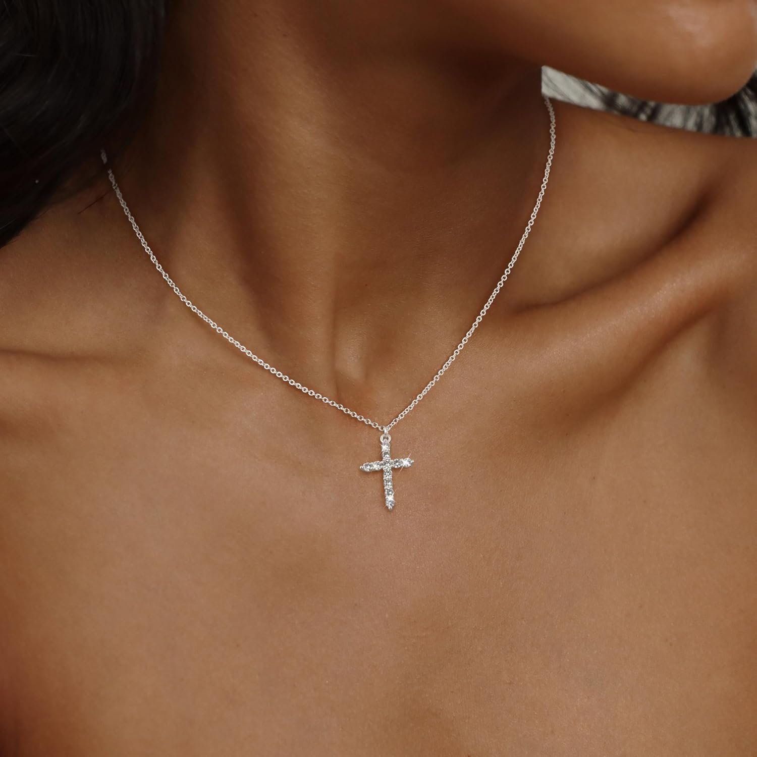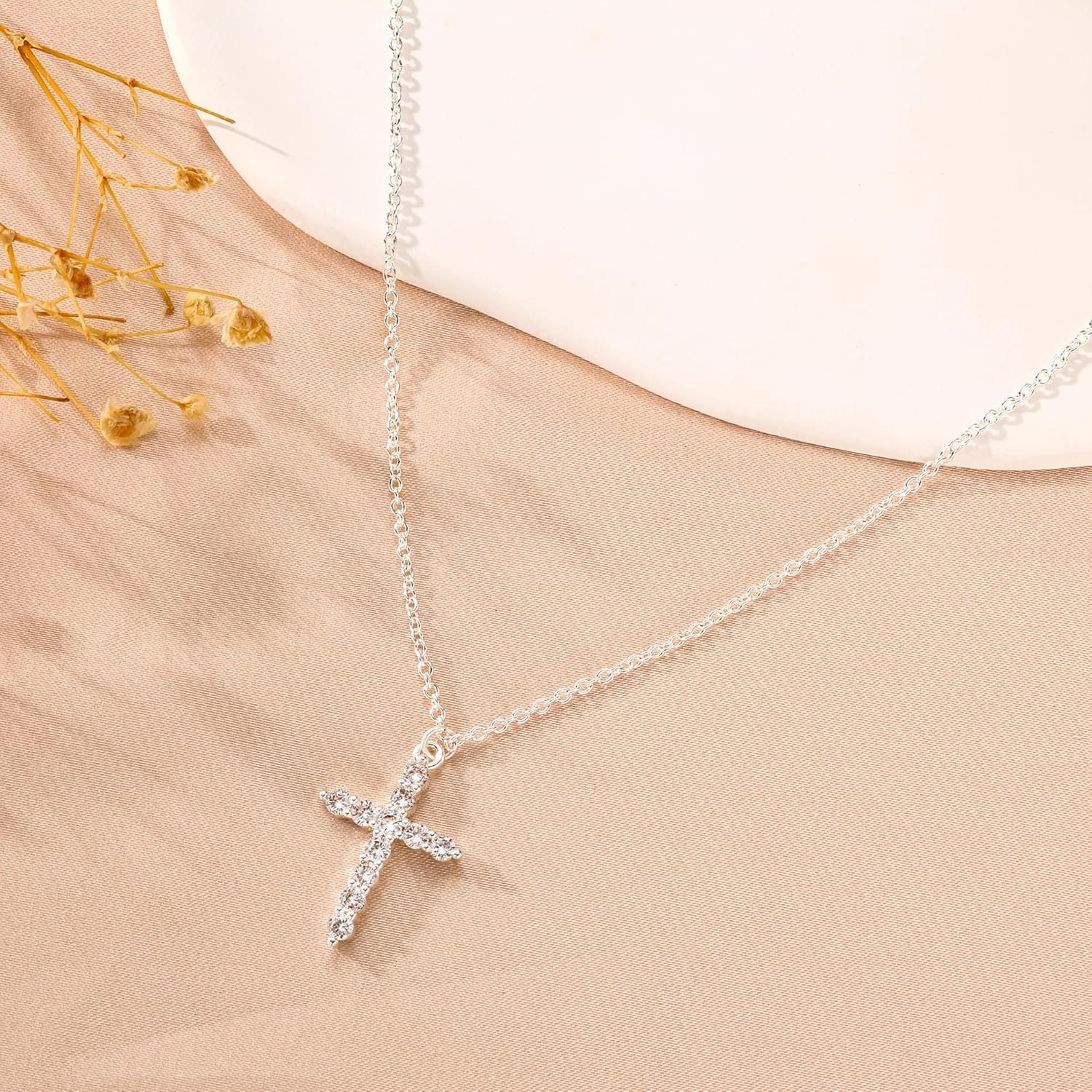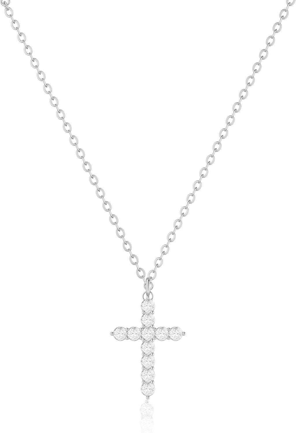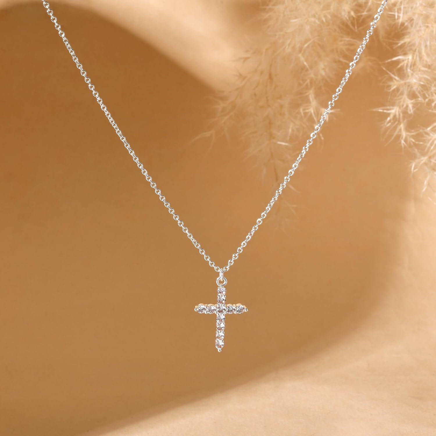 Cross Necklaces for Women Non Tarnish Dainty Gold/Silver/Rosegold Cubic Zirconia Pendant Necklace for Women Trendy Simple Gold/Silver Cross Charm Necklace Waterproof Jewelry for Women