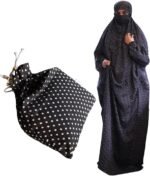 CRSG Islamic Prayer Dress for Women- Free Size, Muslim Dress with Hijab, Jilbab/Namaz Khimar/Prayer Clothes Niqab Khimar, Islamic Premium Prayer Clothes, Black with tiny white little stars color