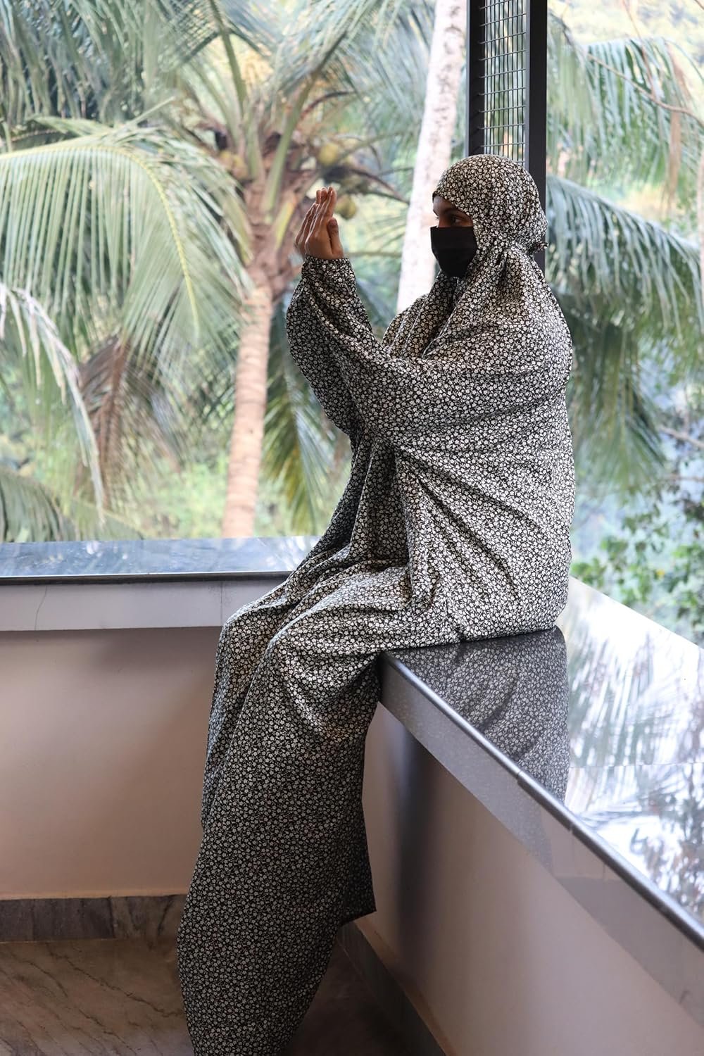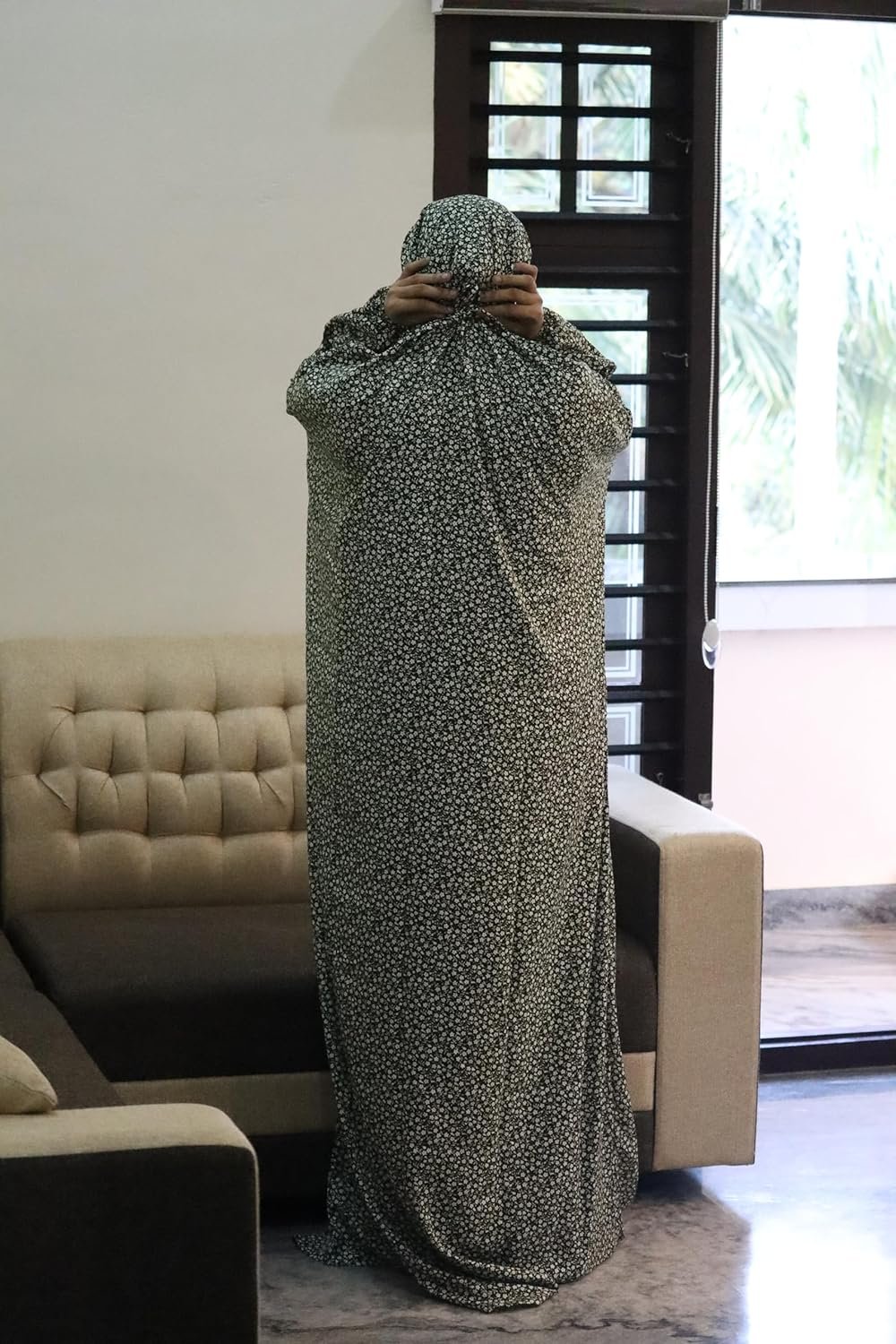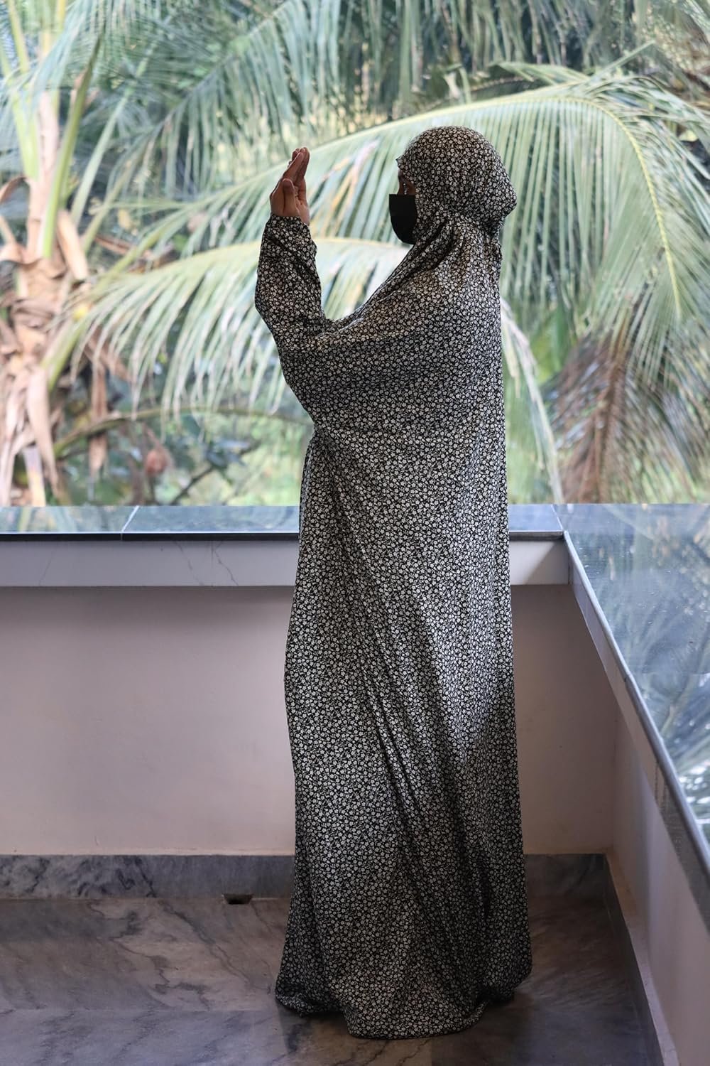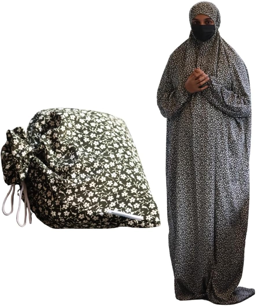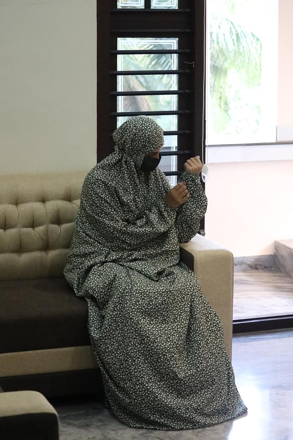 CRSG Islamic Prayer Dress for Women- Free Size, Muslim Dress with Hijab, Jilbab/Namaz Khimar/Prayer Clothes Niqab Khimar, Islamic Premium Prayer Clothes, Dark green floral color