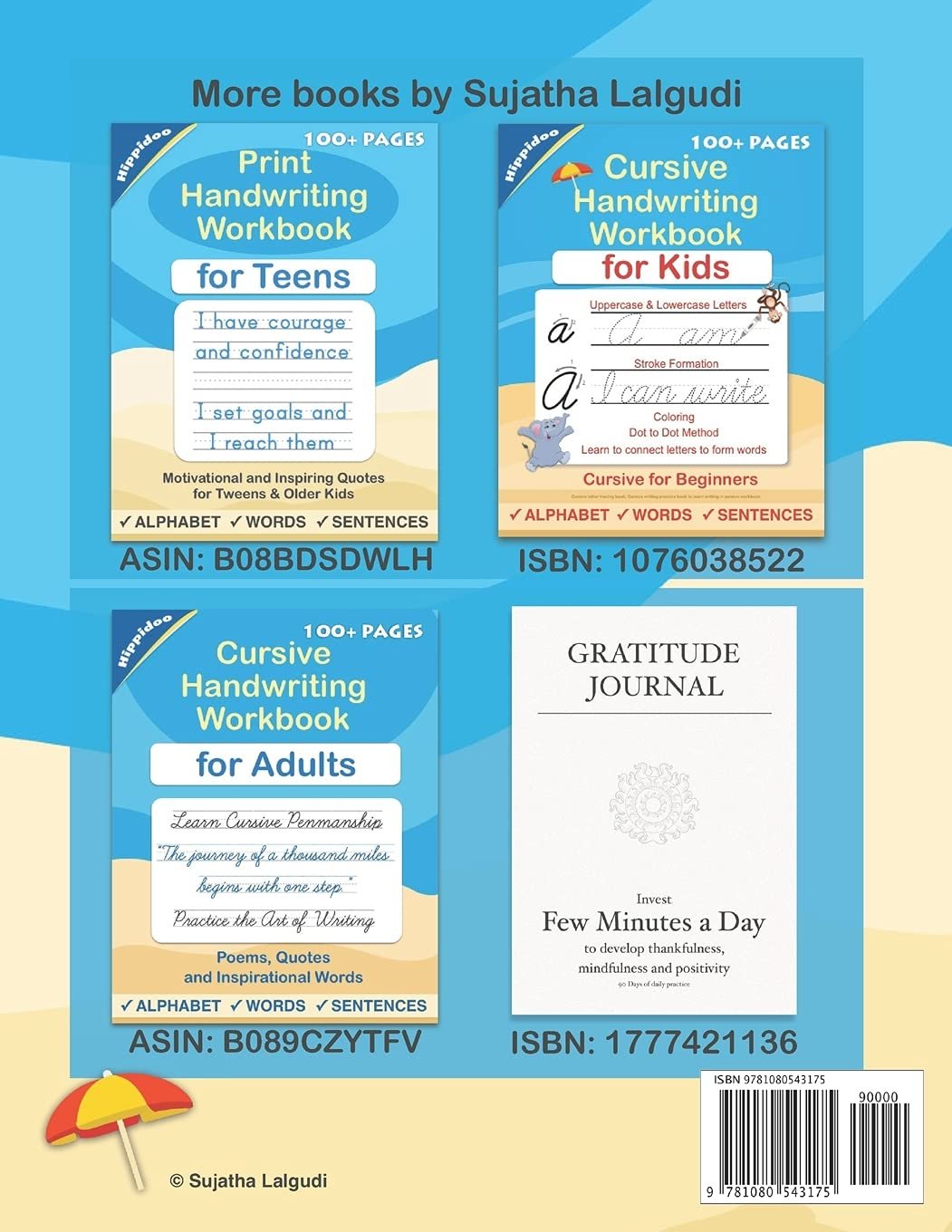 The book starts with the basic alphabet to develop the required muscle memory and progressively advances to writing using a smaller letter size. It builds an understanding of how to form each cursive letter correctly and connect them.
