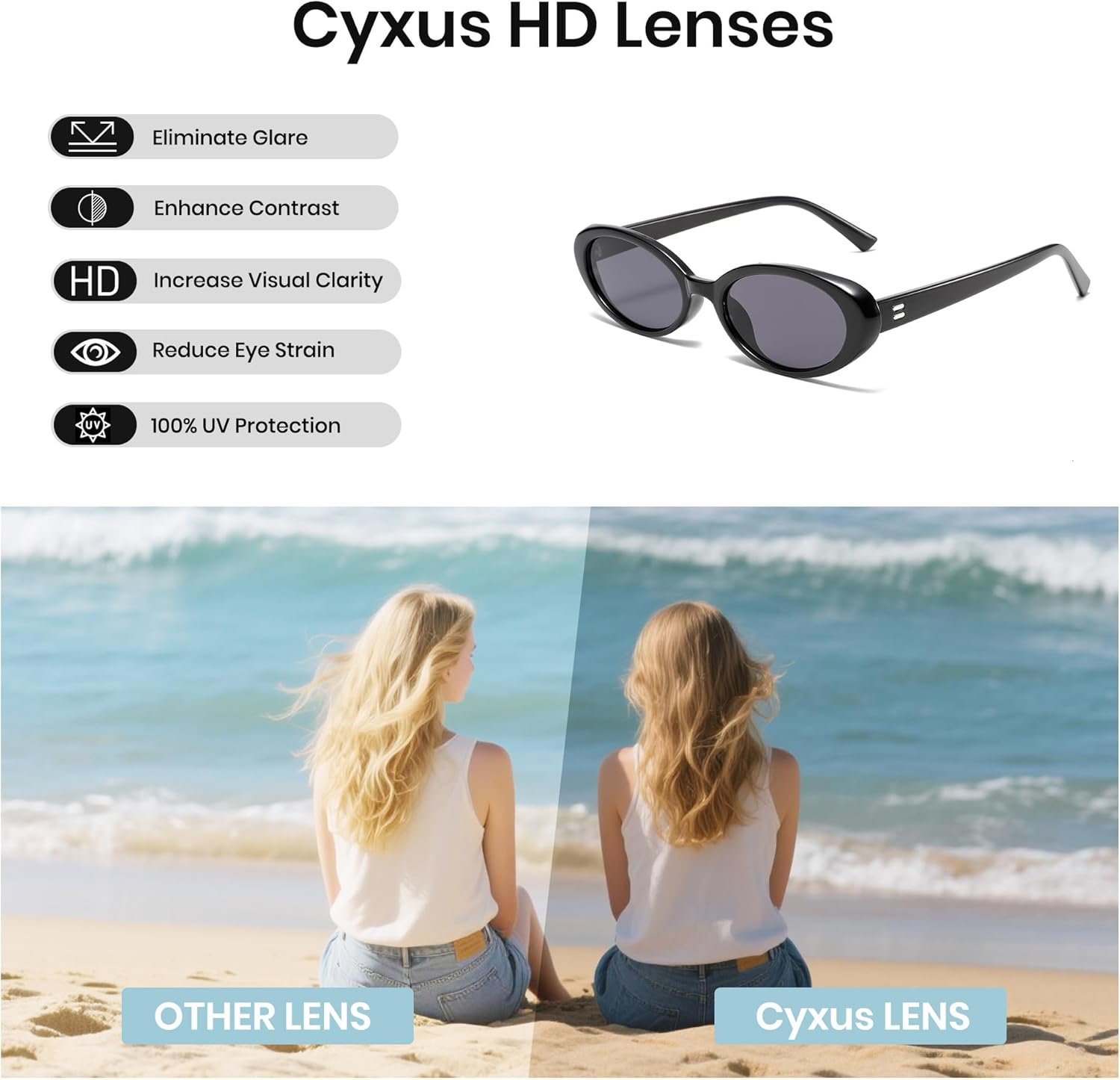 Cyxus Sunglasses for Women, Lightweight Oval Frame UV Protection Anti-Glare Sunglasses for Woman