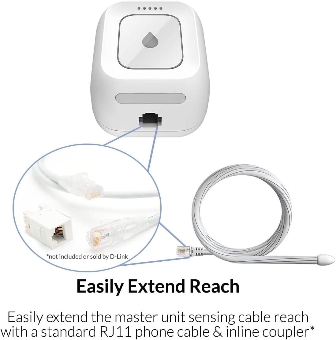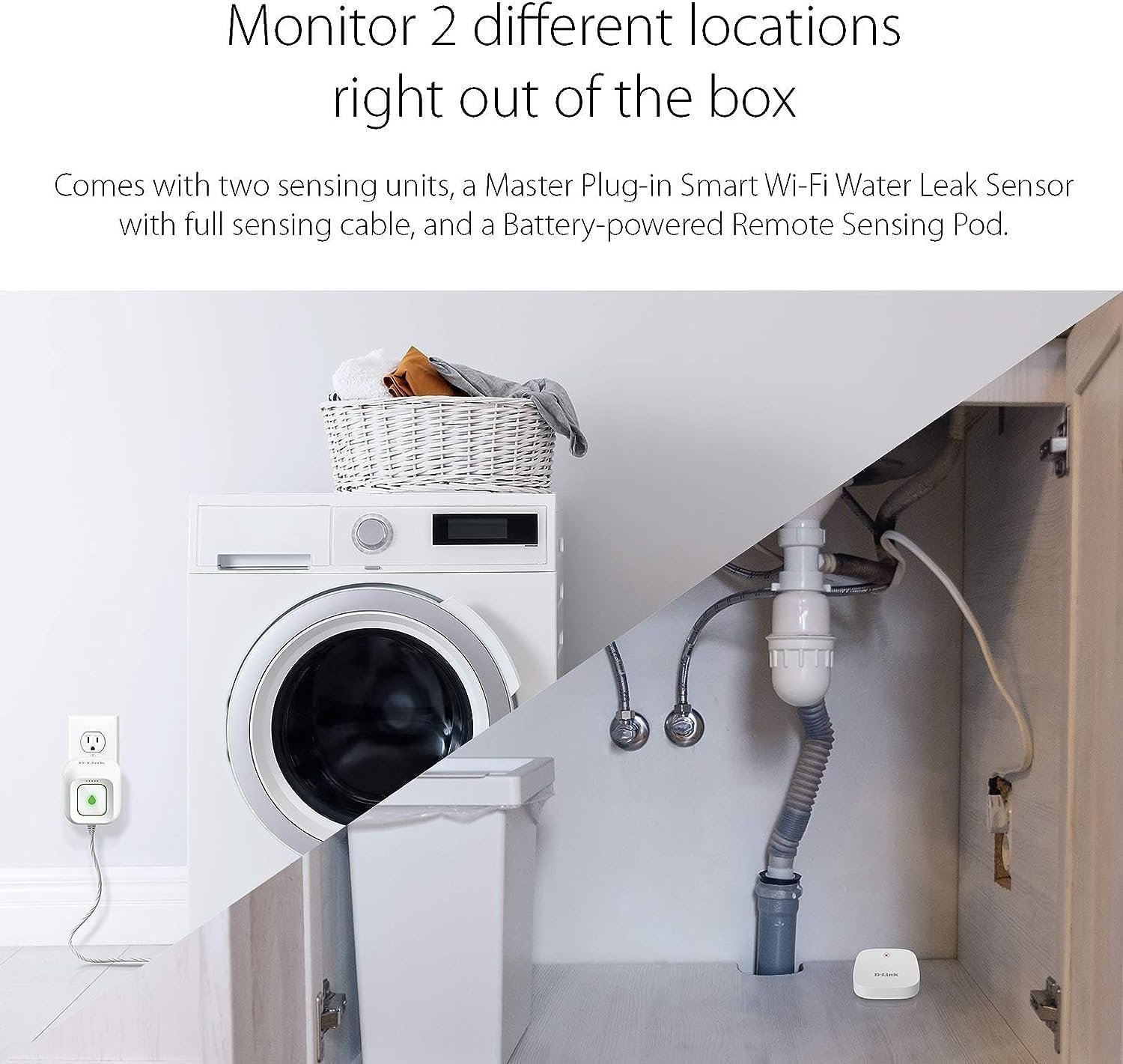 FLEXIBLE PLACEMENT – The master plug-in Smart Wi-Fi Water Leak Sensor (DCH-S162) includes a 1M extension cable plus 0.5M sensing cable that detects water along its full length. Perfect for monitoring under an appliance or in tight spaces.