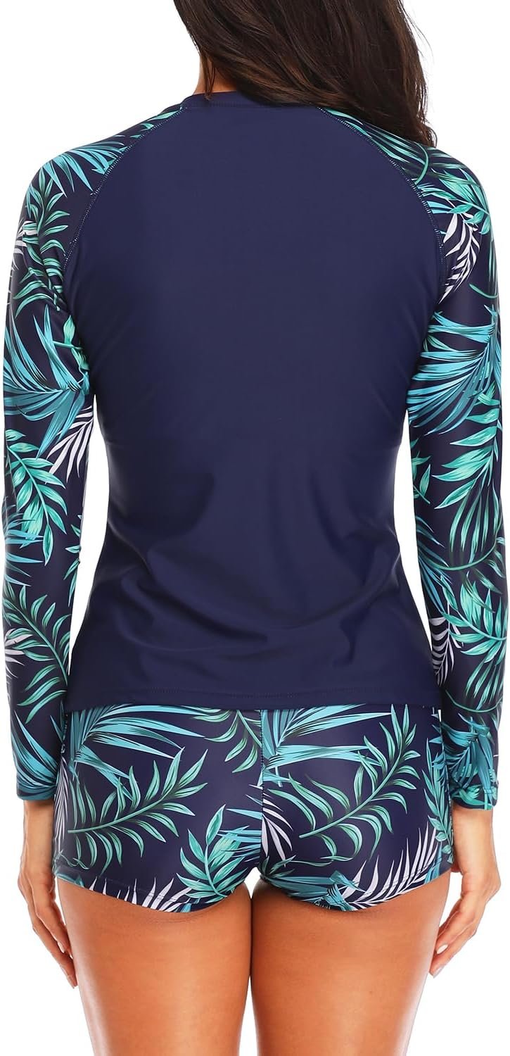 Daci Women Two Piece Rash Guard Long Sleeve Swimsuits UV UPF 50+ Swim Shirt Bathing Suit with Boyshort Bottom
