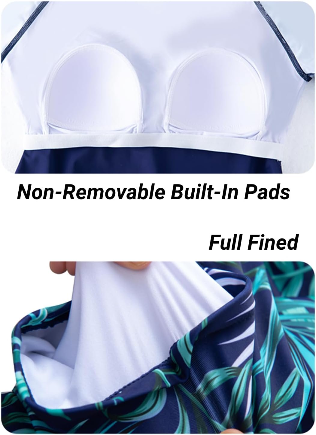 Customers find the swimsuit flattering with colors and patterns that match the photos, and appreciate its comfort, with one noting it doesn’t hug the body weirdly. The material quality is good, with one customer mentioning it’s thick enough to last a few seasons, and they consider it worth the price. The built-in bra and sun protection features receive positive feedback, with customers saying it provides great protection from the sun. The sizing receives mixed reviews – while some say it stays in place while swimming, others report that the shorts ride up.