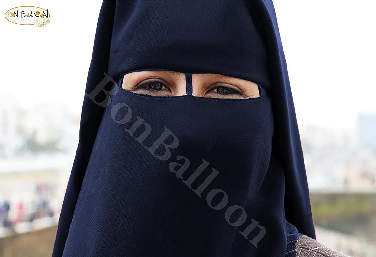 Dark Blue XL Long Saudi Layered Niqab Niqabs Nikab Naqaab 3 Layers Burqa Hijab Face Cover Veil Islam Islamic Dress Clothing for Muslim Womens Abaya Jilbab Dress