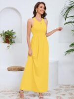 DEARCASE Women’s Beach Maxi Dress Casual Sleeveless Long Elegant Waistband A-Line Dresses with Pockets Fit Sizes Nice Beautiful Floor Length Styles Flattering Occasion Simple and Formal Seasonal Wear