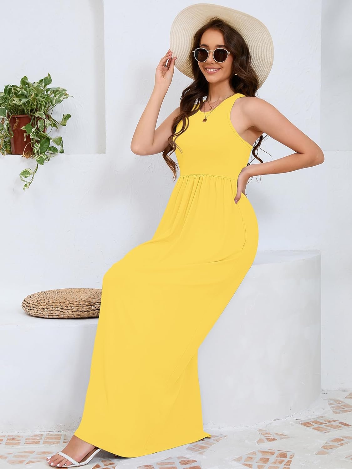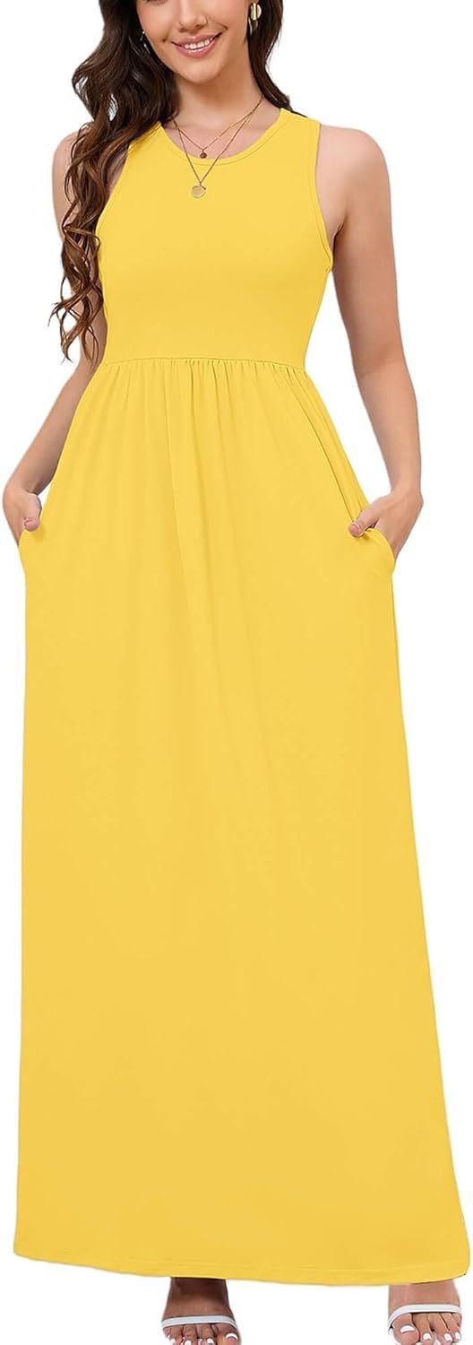 DEARCASE Women’s Sleeveless Maxi Dress Casual Plain Loose Summer Vacation Beach Long Dresses with Pockets