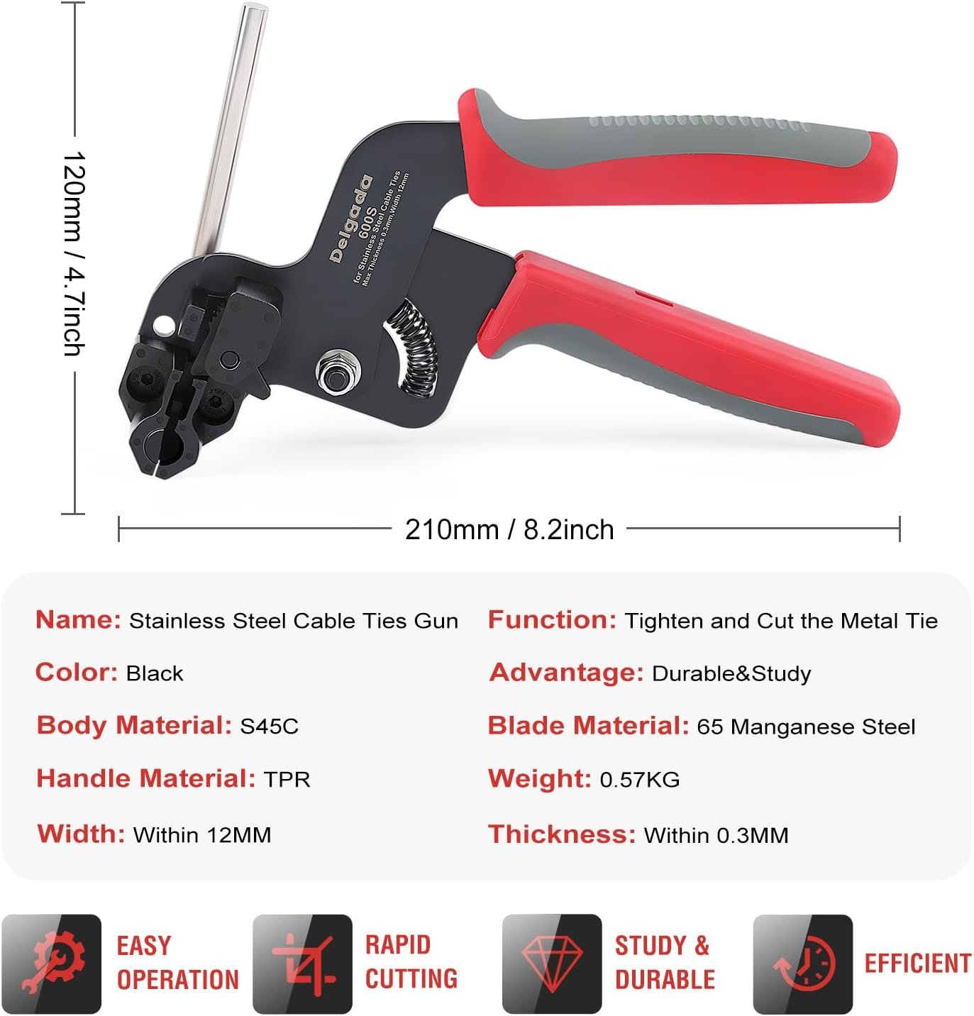 【Metal Zip Tie Tool】 Quickly install stainless steel cable ties with one-squeeze tension adjustment. Versatile, ergonomic design reduces fatigue for lasting use.