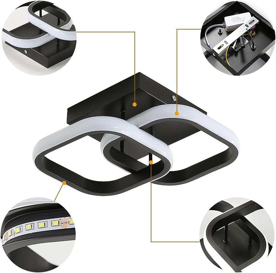 【𝐌𝐨𝐝𝐞𝐫𝐧 𝐂𝐞𝐢𝐥𝐢𝐧𝐠 𝐋𝐚𝐦𝐩】This black bedroom ceiling light fixture features a simple two square cross design, Show a modern and fashionable atmosphere, Very suitable for corridors, stairs, cloakrooms, balconies, hallways, bedrooms, bathroom entrances, etc