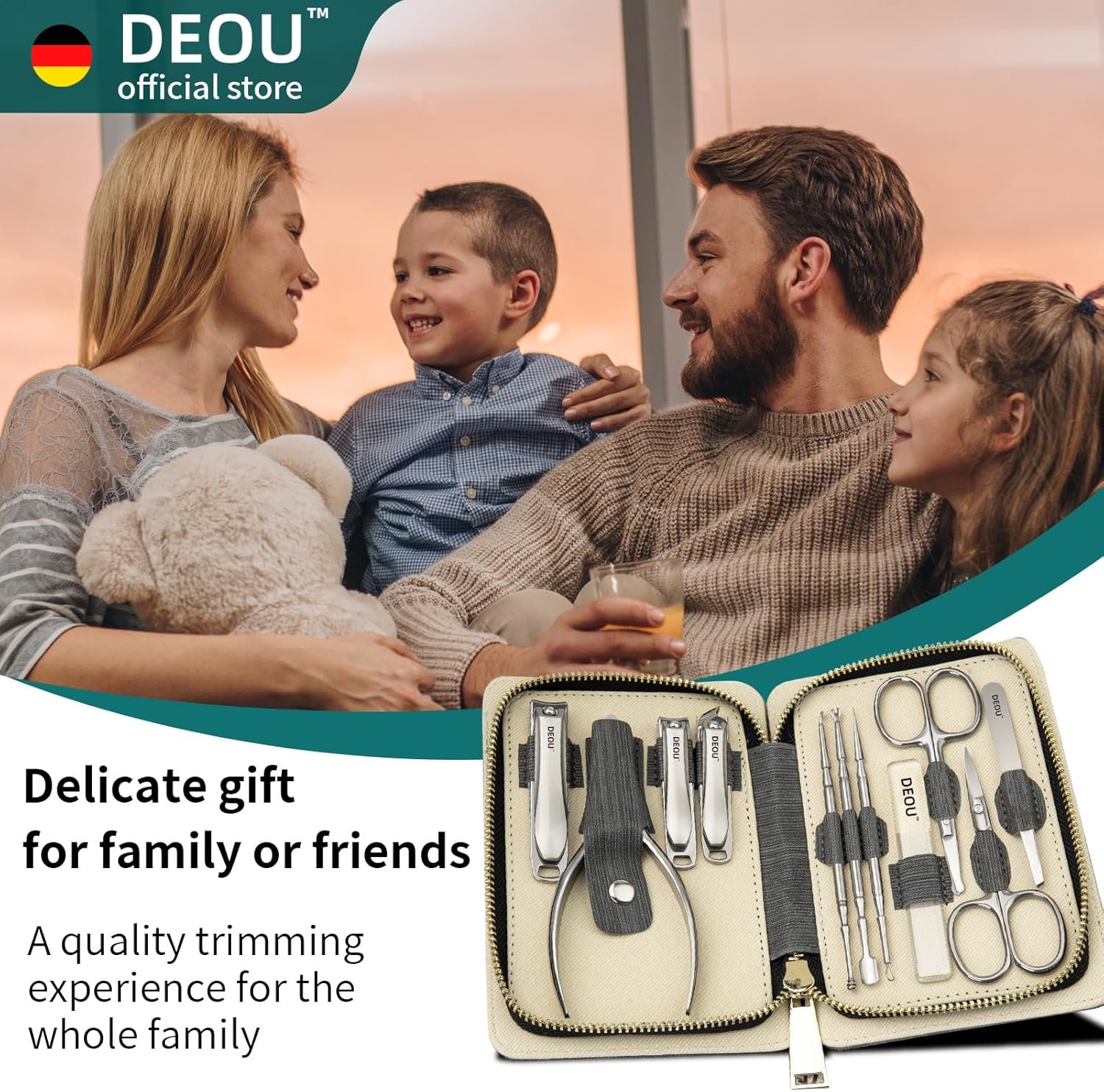 DEOU Manicure Sets Nail Clippers Stainless Steel Manicure and Pedicure kit Girls Professional Nail Files and Men’s Grooming Scissors Tools for Home Personal Care or Gifts (Pink)