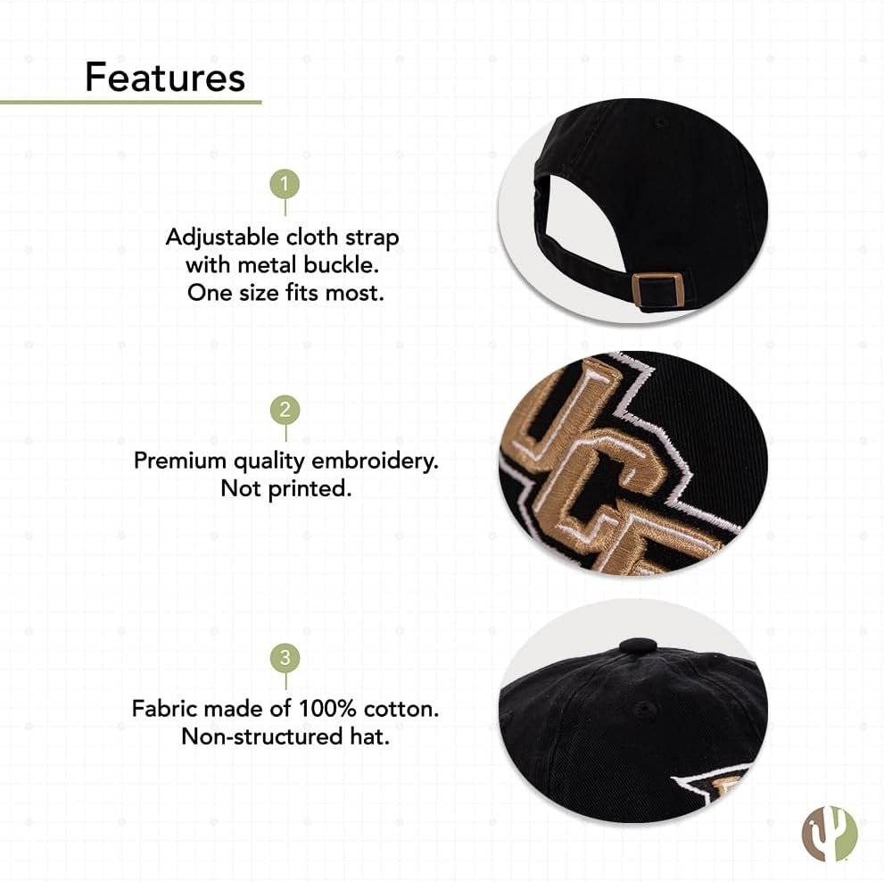Desert Cactus University of Central Florida Baseball Hat Knights UCF Brimmed Embroidered Cap Adjustable Cloth Strap Adult