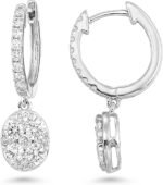Diamond Delight 1 Carat Real Natural Diamond Round Dangle Earrings for Women – 14k White Gold Hoop Earrings for Her with Elegant Drop Round Pave Design (H, VS1, 1.00 cttw) Secure Hinged Hoops